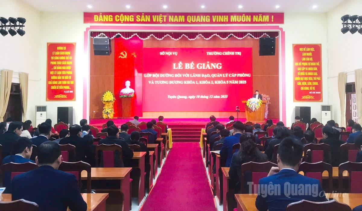 Phát biểu tại lễ bế giảng, lãnh đạo Sở Nội vụ và Trường Chính trị tỉnh mong muốn hai đơn vị tiếp tục phối hợp, hoàn thành chỉ tiêu về đào tạo bồi dưỡng đề ra. Mong muốn các học viên sau khi hoàn thành khóa học sẽ vận dụng nội dung đã học vào thực tiễn cơ sở, góp phần thực hiện thắng lợi nghị quyết đại hội Đảng các cấp, nhiệm kỳ 2025-2030.
