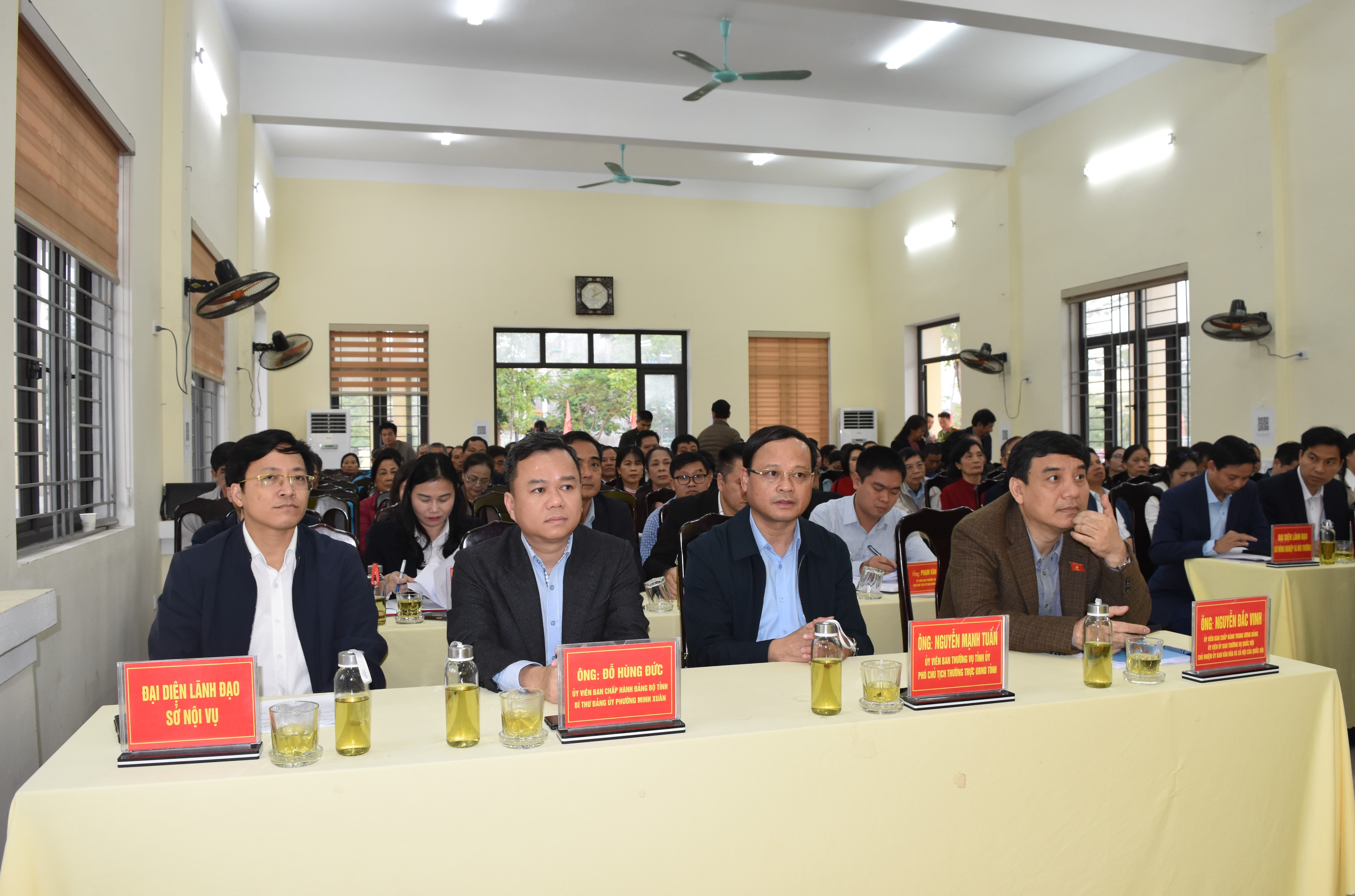 Phát biểu tại hội nghị, Chủ nhiệm Ủy ban Văn hóa và Xã hội của Quốc hội Nguyễn Đắc Vinh cảm ơn sự quan tâm, theo dõi của cử tri, nhân dân địa phương đối với hoạt động của Quốc hội, Đoàn đại biểu Quốc hội tỉnh trong thời gian qua. Đối với các ý kiến, kiến nghị của cử tri, đồng chí đề nghị cấp ủy, chính quyền địa phương tiếp thu, xem xét, giải quyết đầy đủ, thấu đáo, đảm bảo quyền lợi của người dân. Đoàn đại biểu Quốc hội tỉnh tiếp thu đầy đủ các ý kiến, kiến nghị chuyển đến các cấp chính quyền, ngành chức năng xem xét giải quyết theo thẩm quyền.