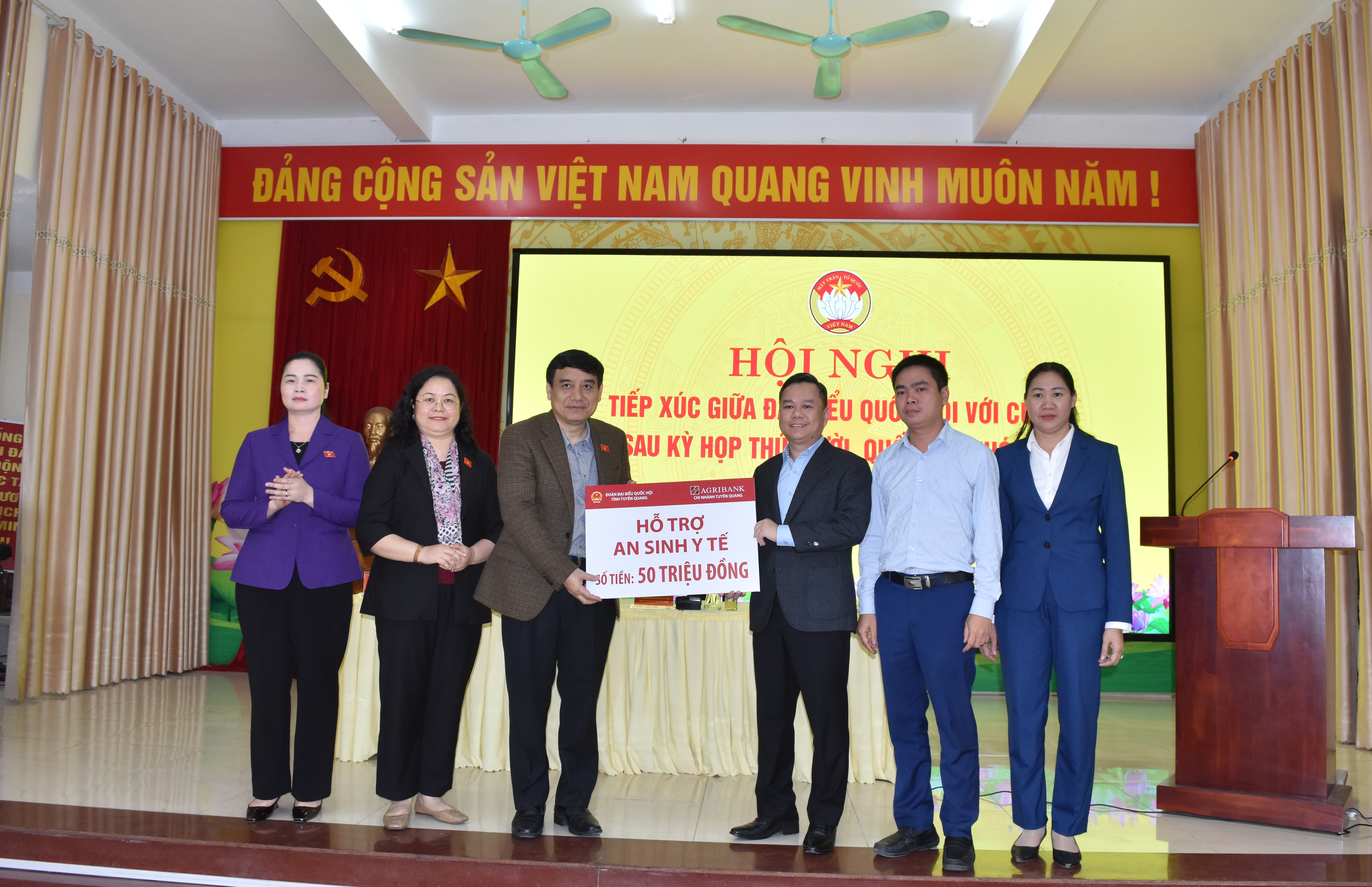 Nhân dịp này, Đoàn ĐBQH tỉnh phối hợp với Ngân hàng Nông nghiệp và Phát triển nông thôn (AGRIBANK) Chi nhánh Tuyên Quang trao 50 triệu đồng hỗ trợ công tác an sinh xã hội trên địa bàn phường Minh Xuân.