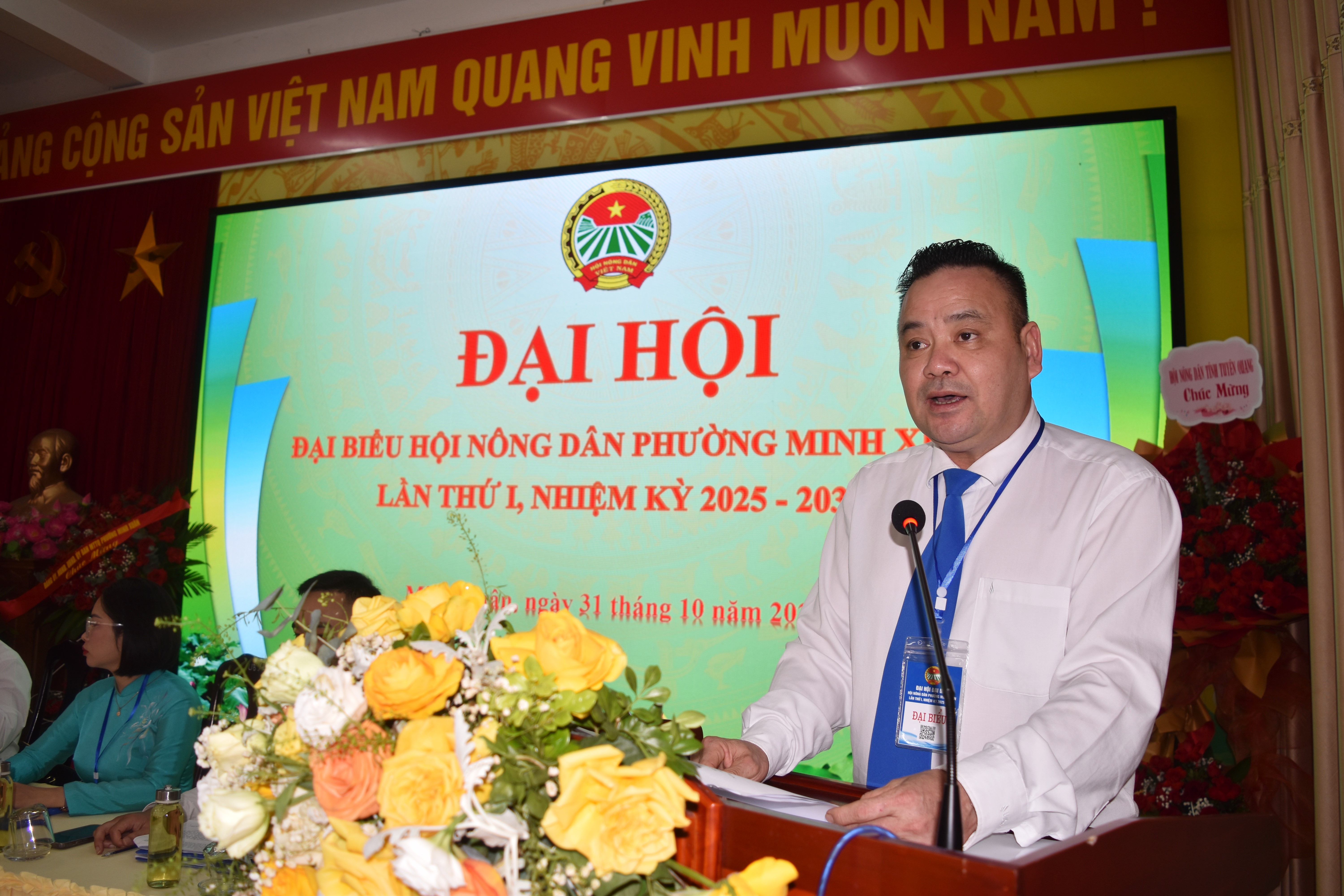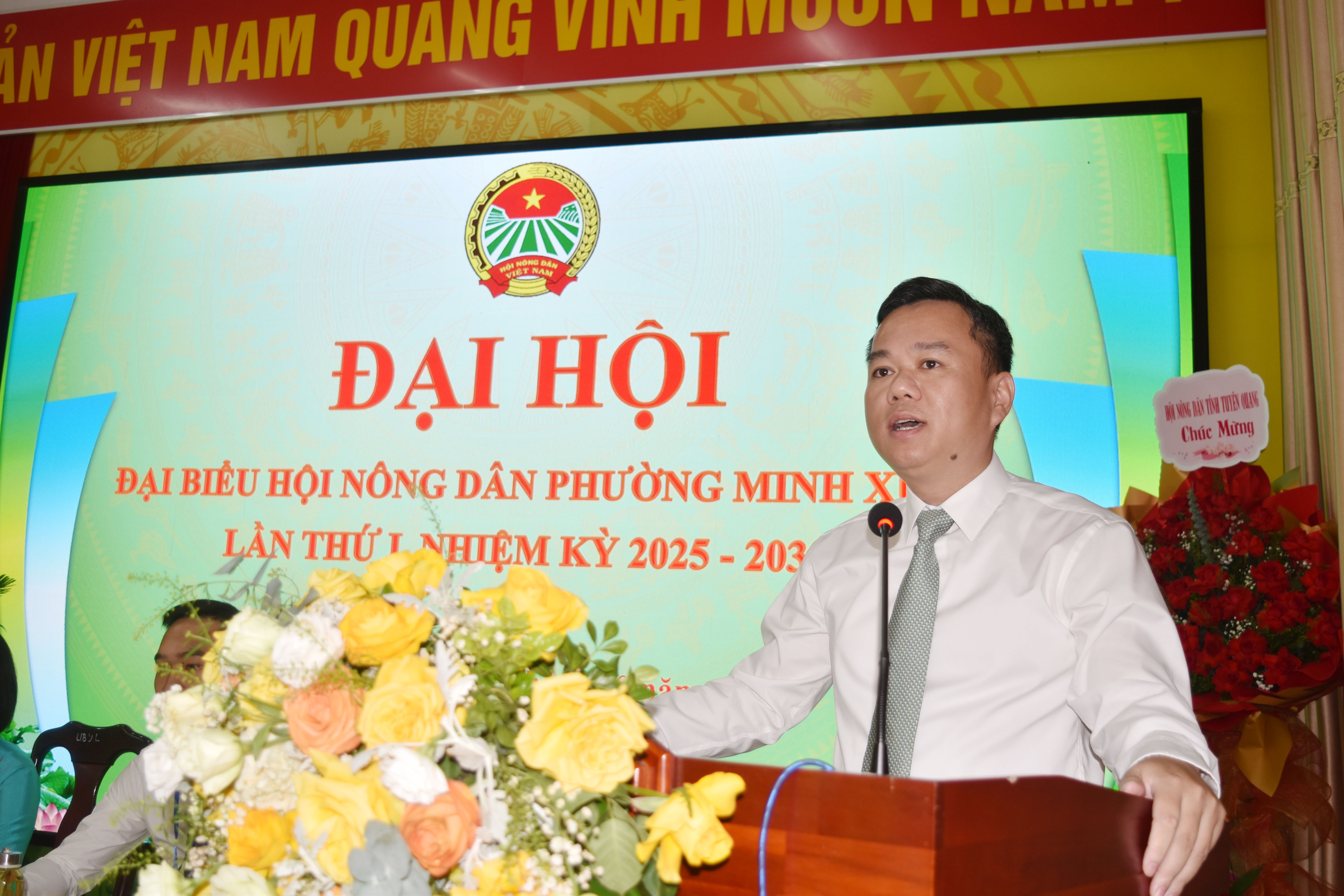 Phát biểu chỉ đạo tại Đại hội, đồng chí Đỗ Hùng Đức, Ủy viên Ban Chấp hành Đảng bộ tỉnh, Bí thư Đảng ủy phường Minh Xuân và đồng chí Hoàng Quốc Tuấn, Phó Chủ tịch Hội Nông dân tỉnh đã biểu dương kết quả Hội nông dân phường đạt được và đề nghị Hội Nông dân phường Minh Xuân tiếp tục phát huy vai trò trung tâm, nòng cốt, đổi mới mạnh mẽ nội dung, phương thức tuyên truyền theo hướng thiết thực, hiệu quả; tập trung tuyên truyền các chủ trương, đường lối, nghị quyết, chỉ thị của Đảng, Nhà nước, của tỉnh và của Hội Nông dân, nhất là về lĩnh vực khoa học và công nghệ, đổi mới sáng tạo, chuyển đổi số. Chủ động, tích cực tham gia xây dựng Đảng, xây dựng chính quyền vững mạnh. Đẩy mạnh các phong trào thi đua gắn với thực hiện Nghị quyết Đại hội Đảng bộ phường nhiệm kỳ 2025-2030.