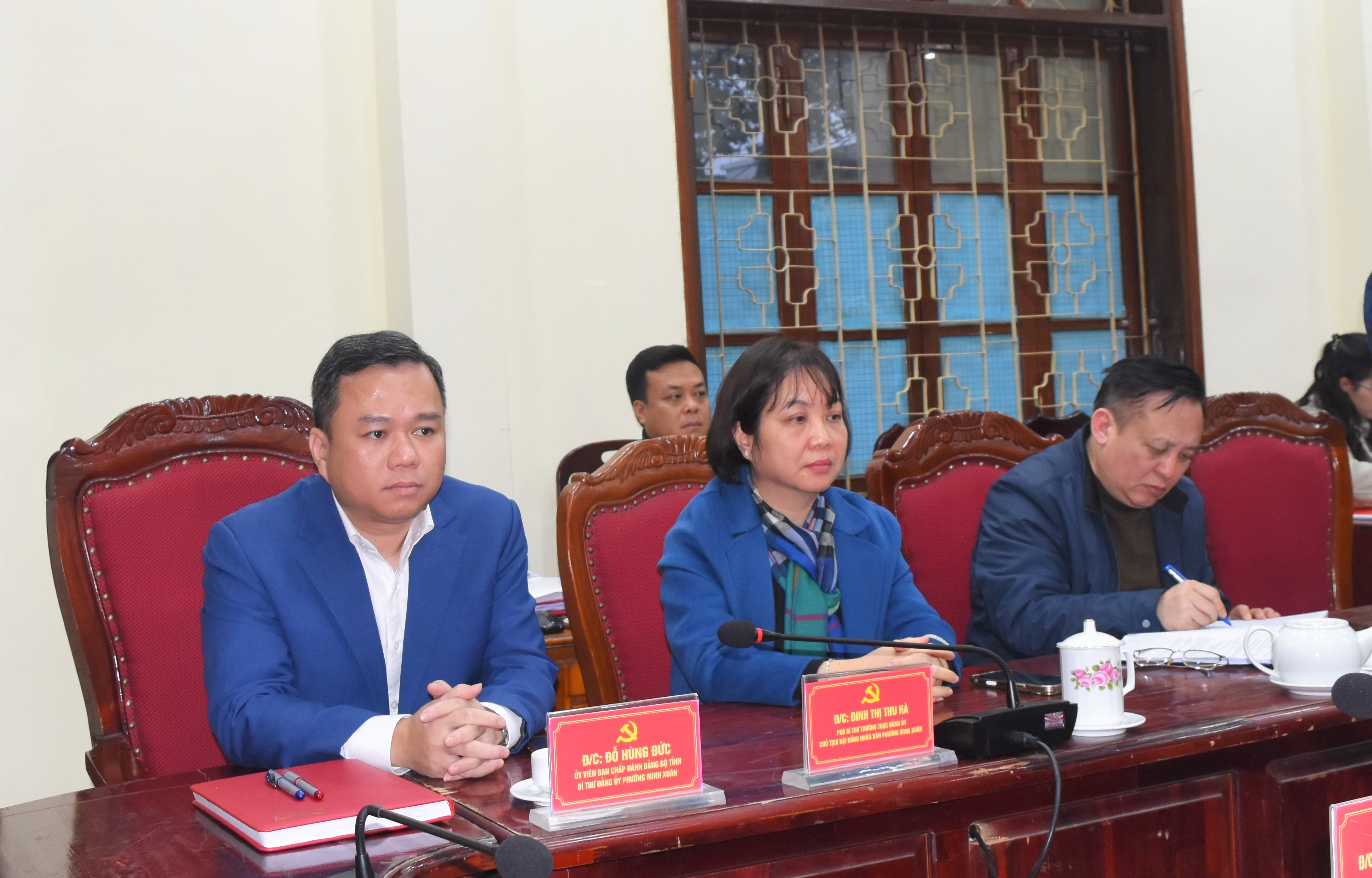 Đ/c Bí thư Đảng ủy phường Đỗ Hùng Đức và đ/c Phó Bí thư Thường trực Đảng ủy phường Đinh Thị Thu Hà Dự Hội nghị