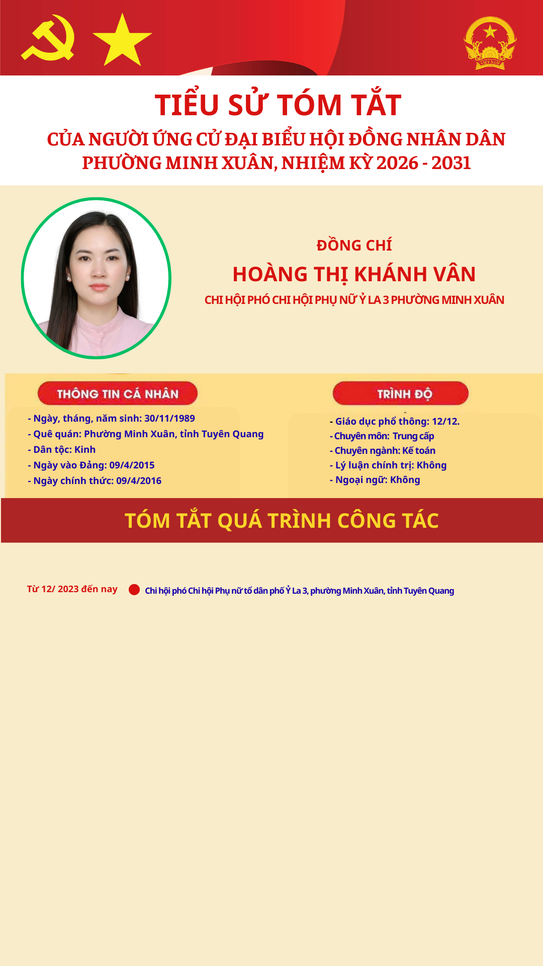 Trưởng Ban biên tập: Vũ Xuân Quỳnh - Phó Chủ tịch UBND phường Minh Xuân - Tuyên Quang