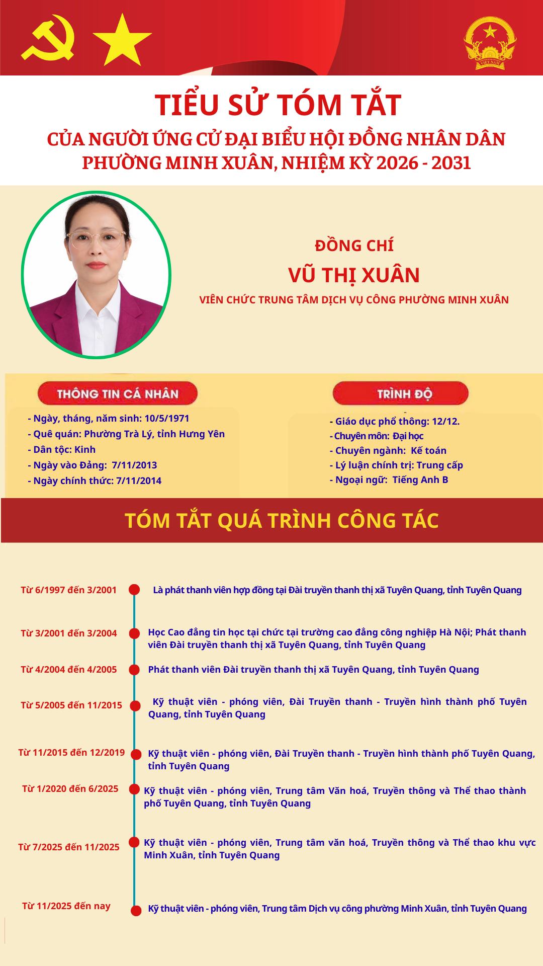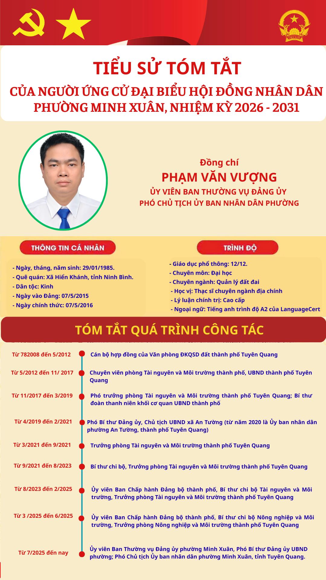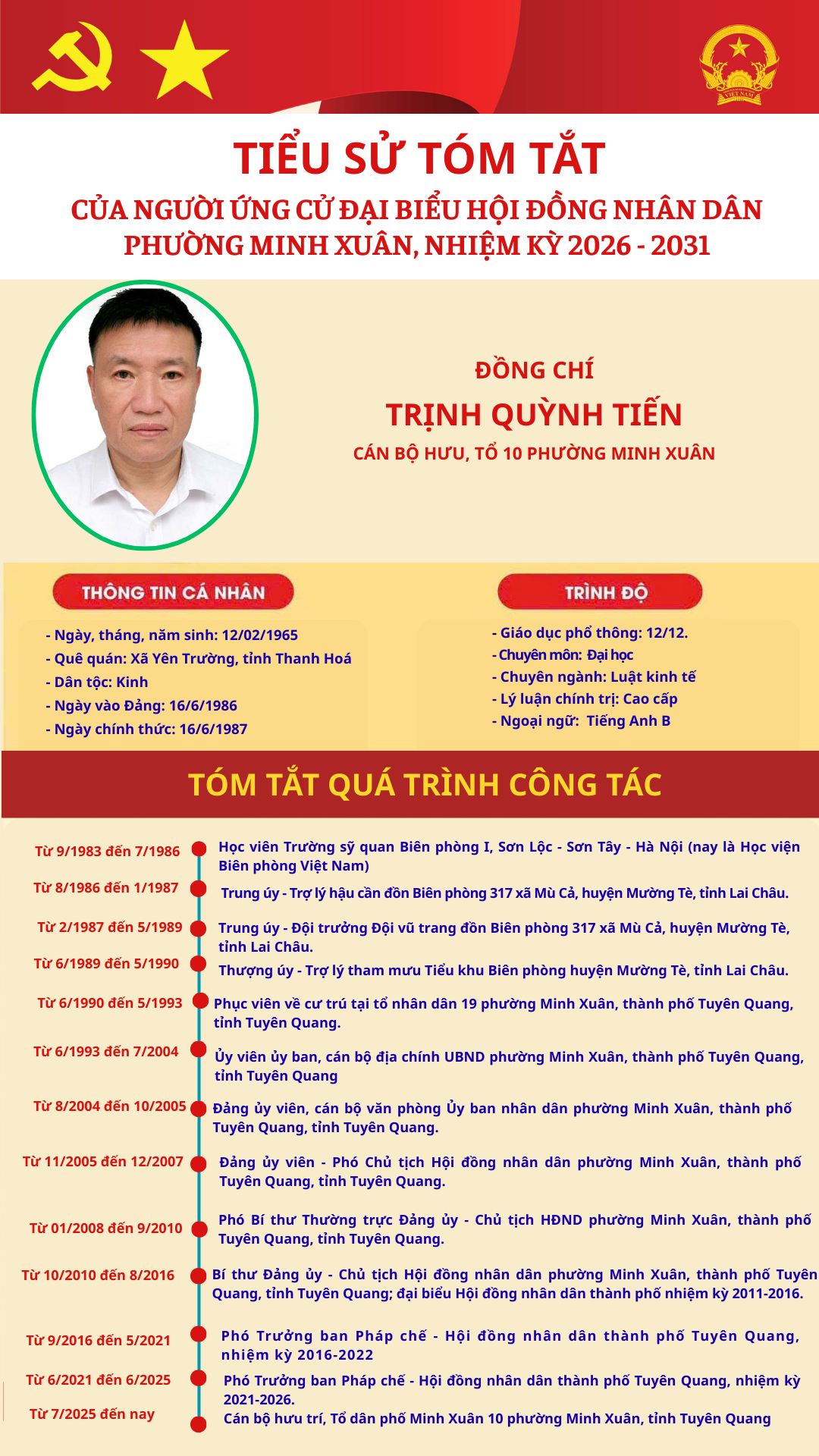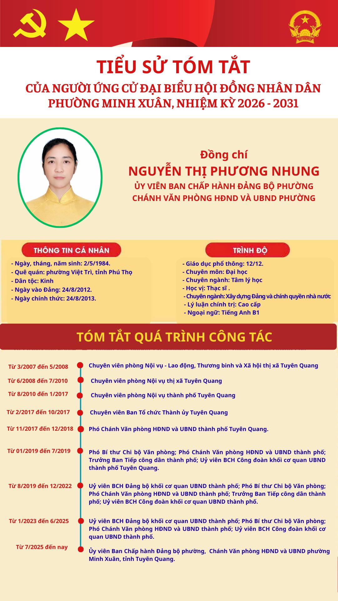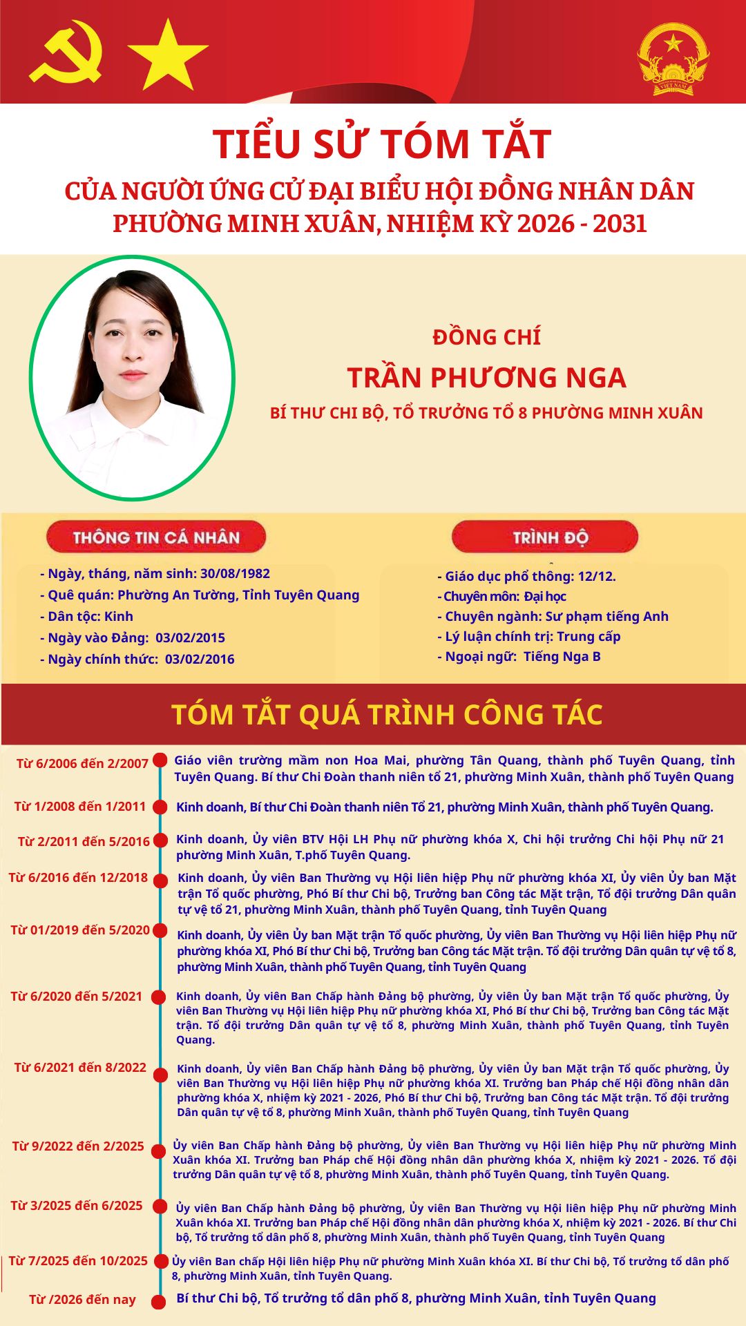 DANH SÁCH TIỂU SỬ TÓM TẮT NGƯỜI ỨNG CỬ TẠI ĐƠN VỊ BẦU CỬ SỐ 5 PHƯỜNG MINH XUÂN