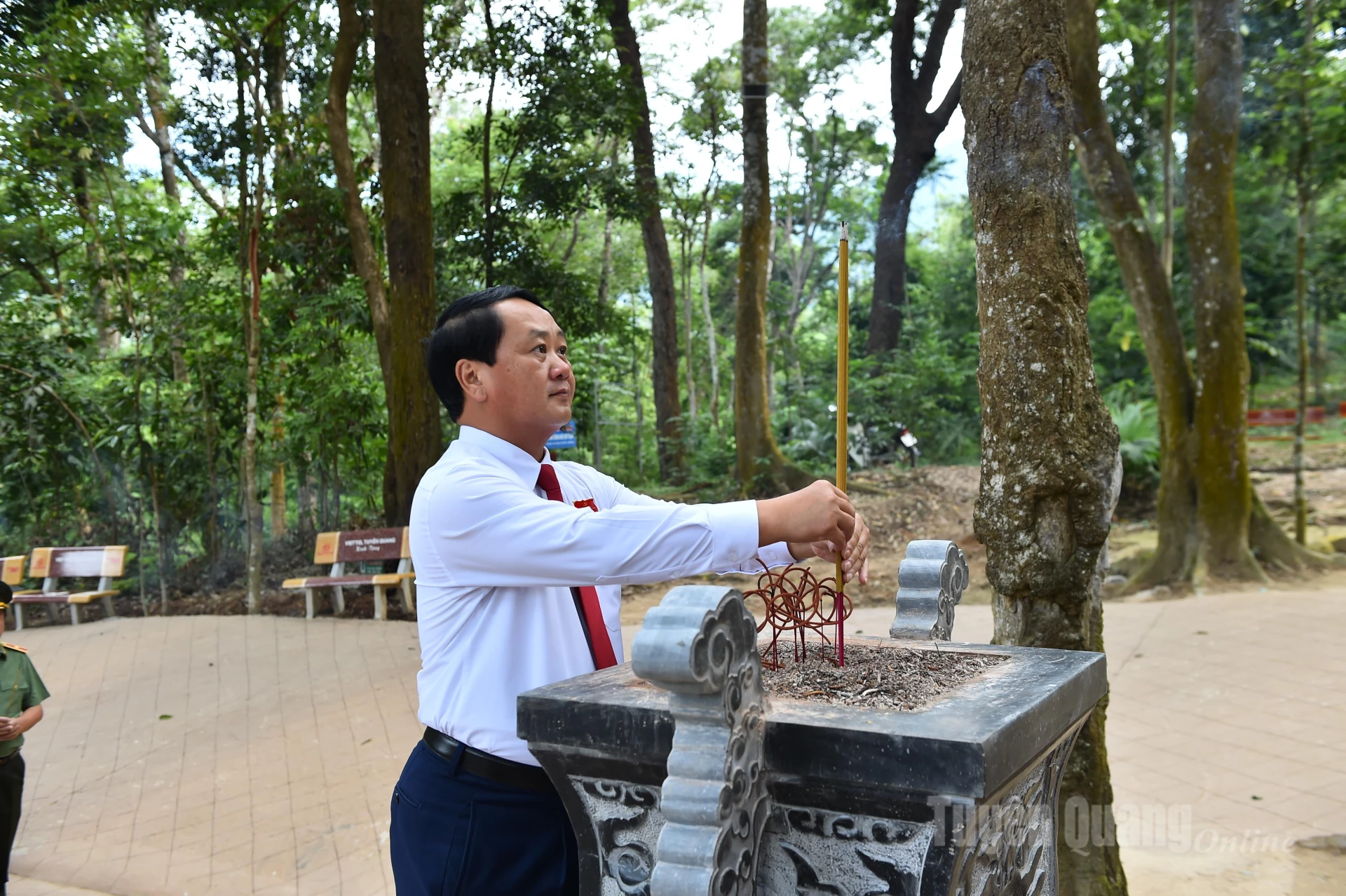 Bí thư Tỉnh ủy Hầu A Lềnh dâng hương tại Đình Tân Trào. Ảnh: Văn Nghị