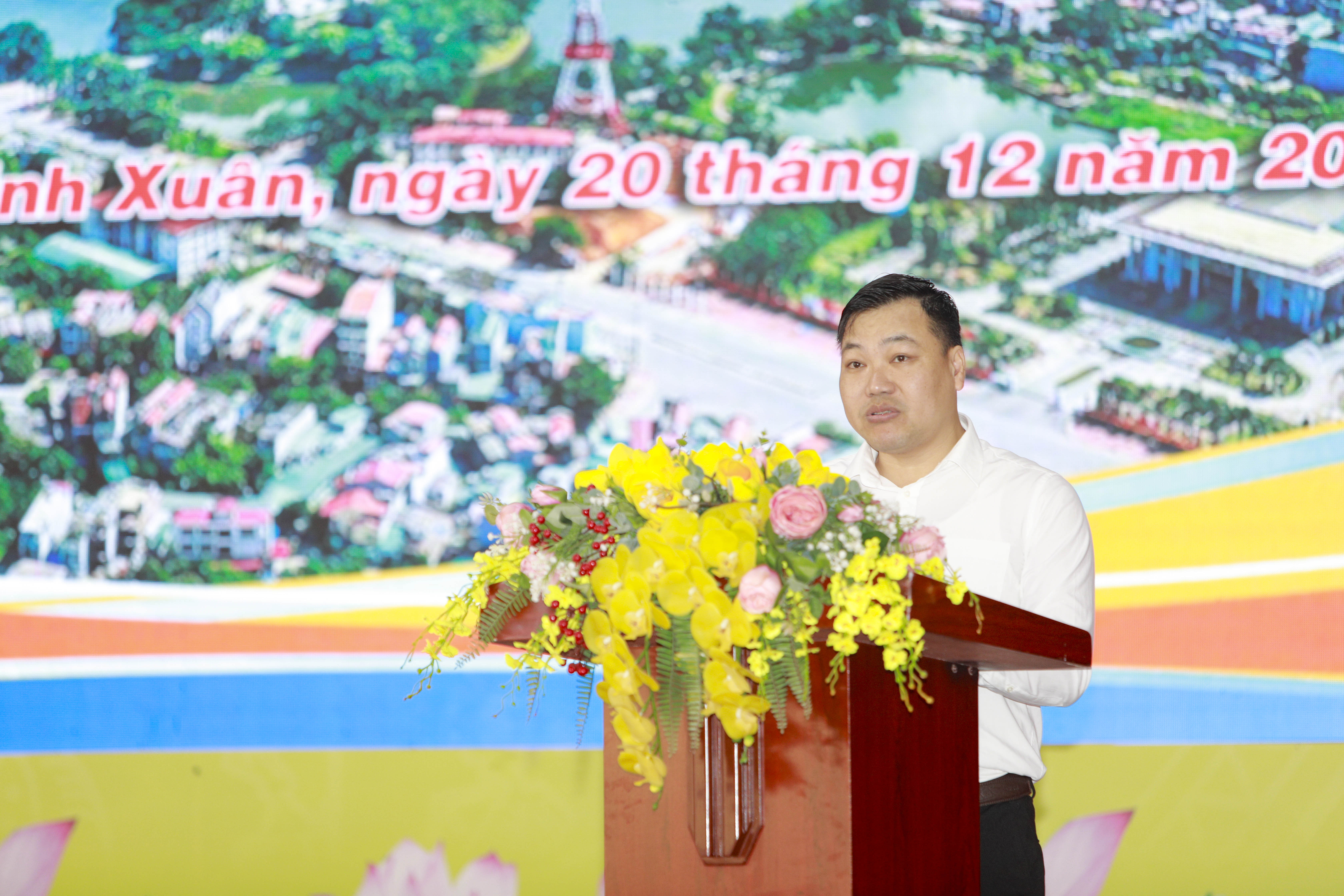 Đồng chí Ngô Tuấn Anh, Ủy viên Ban Chấp hành Đảng bộ phường, Trưởng phòng Văn hóa – Xã hội, UBND phường Minh Xuân phát biểu tại Phiên giao dịch việc làm