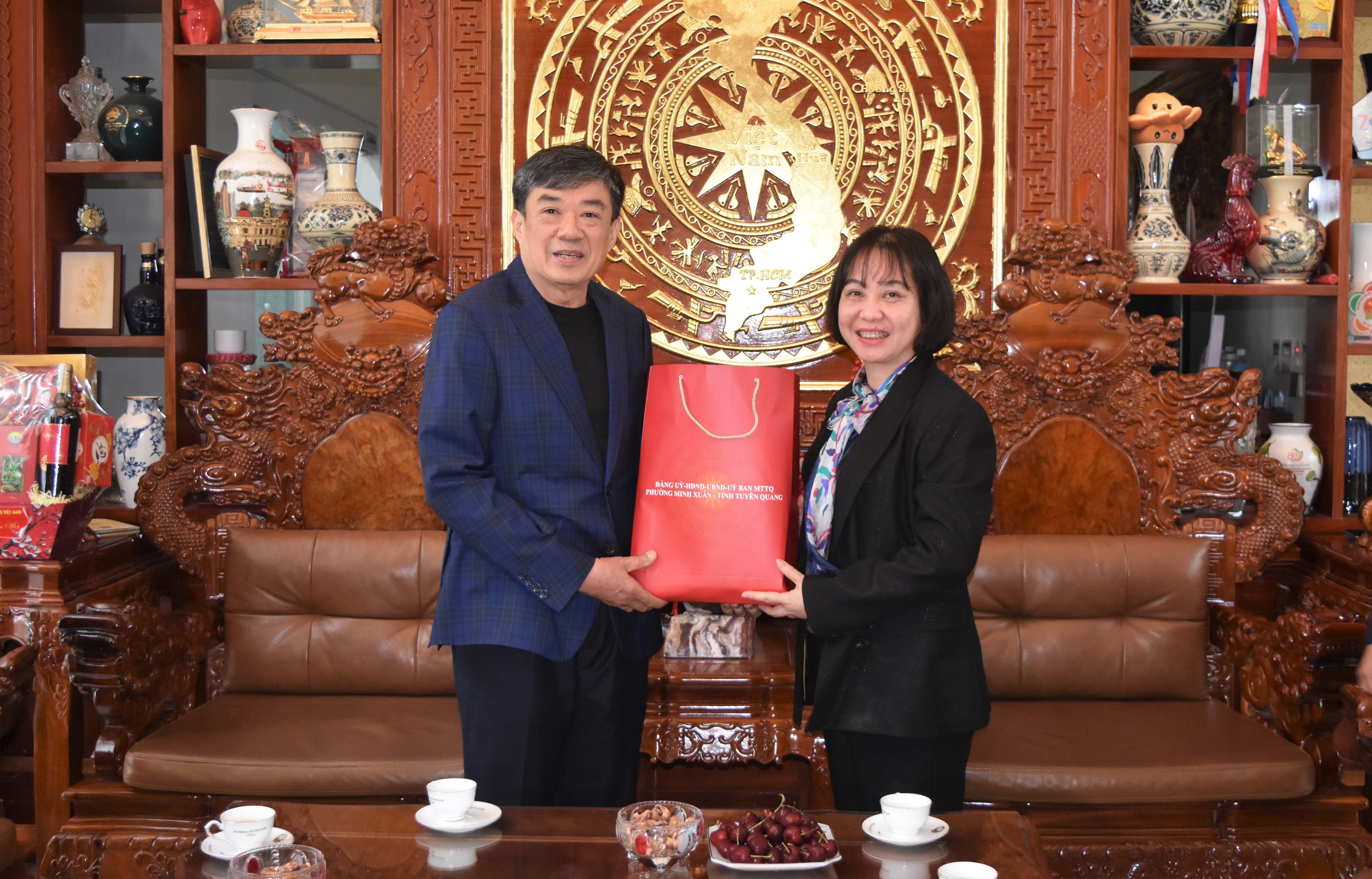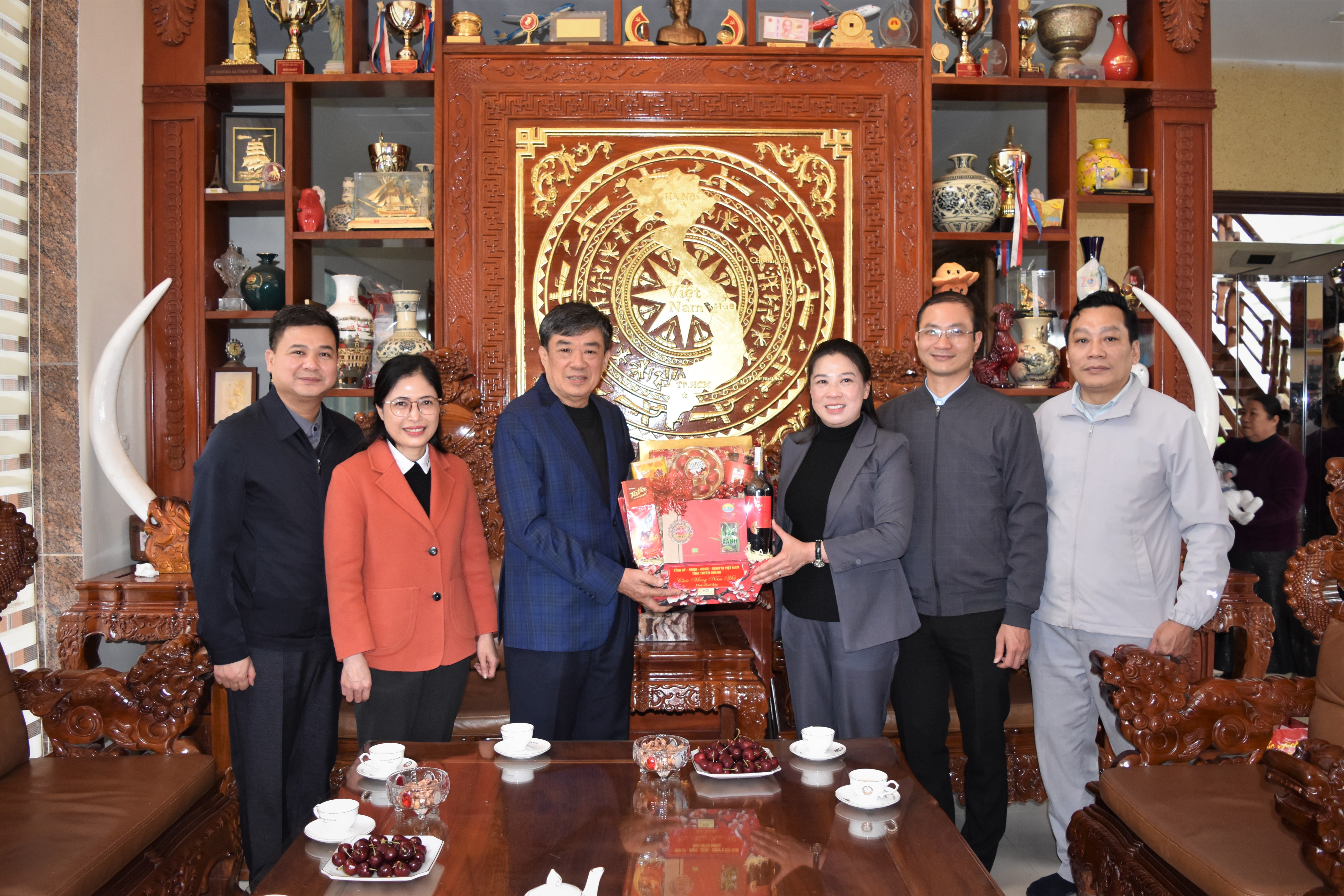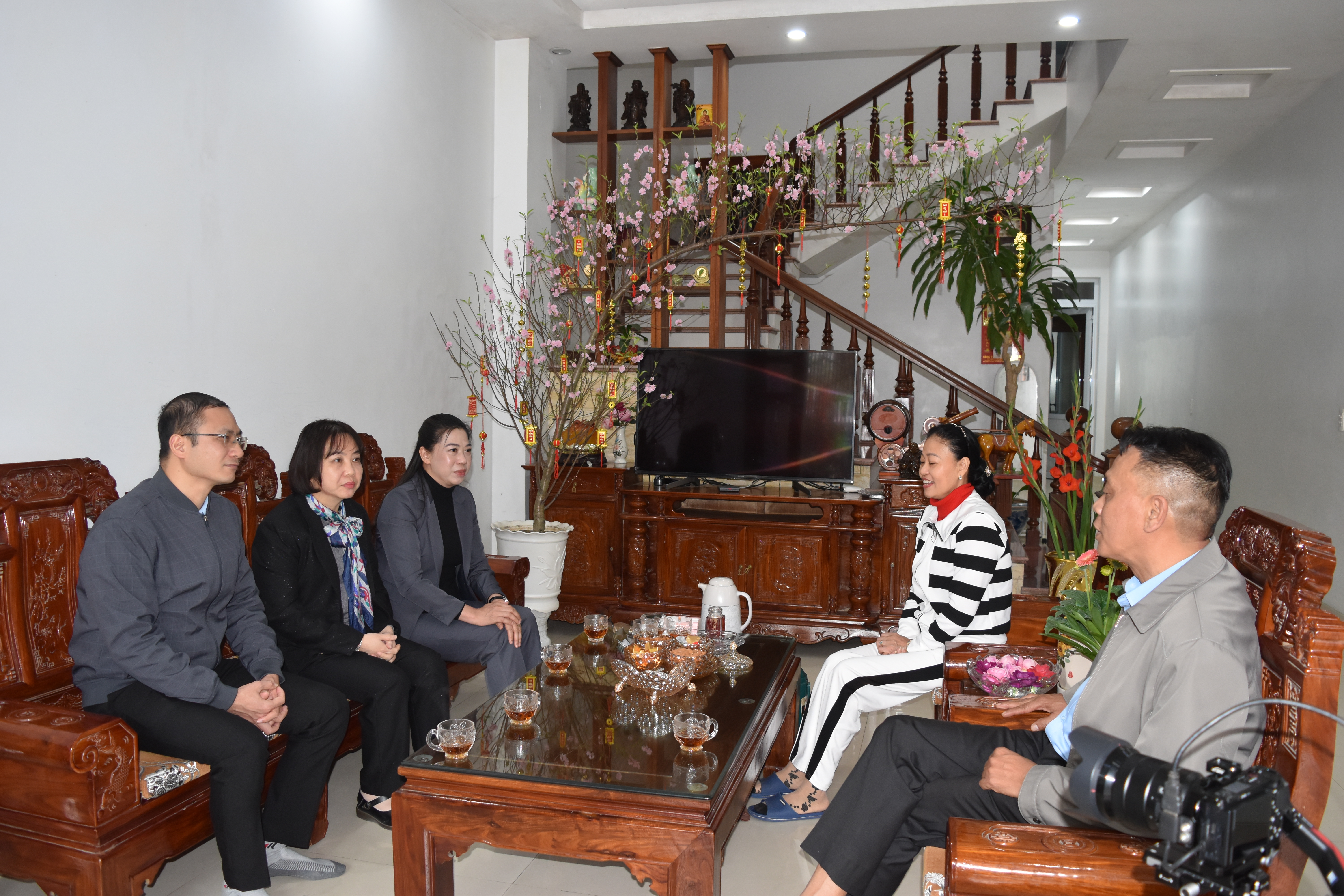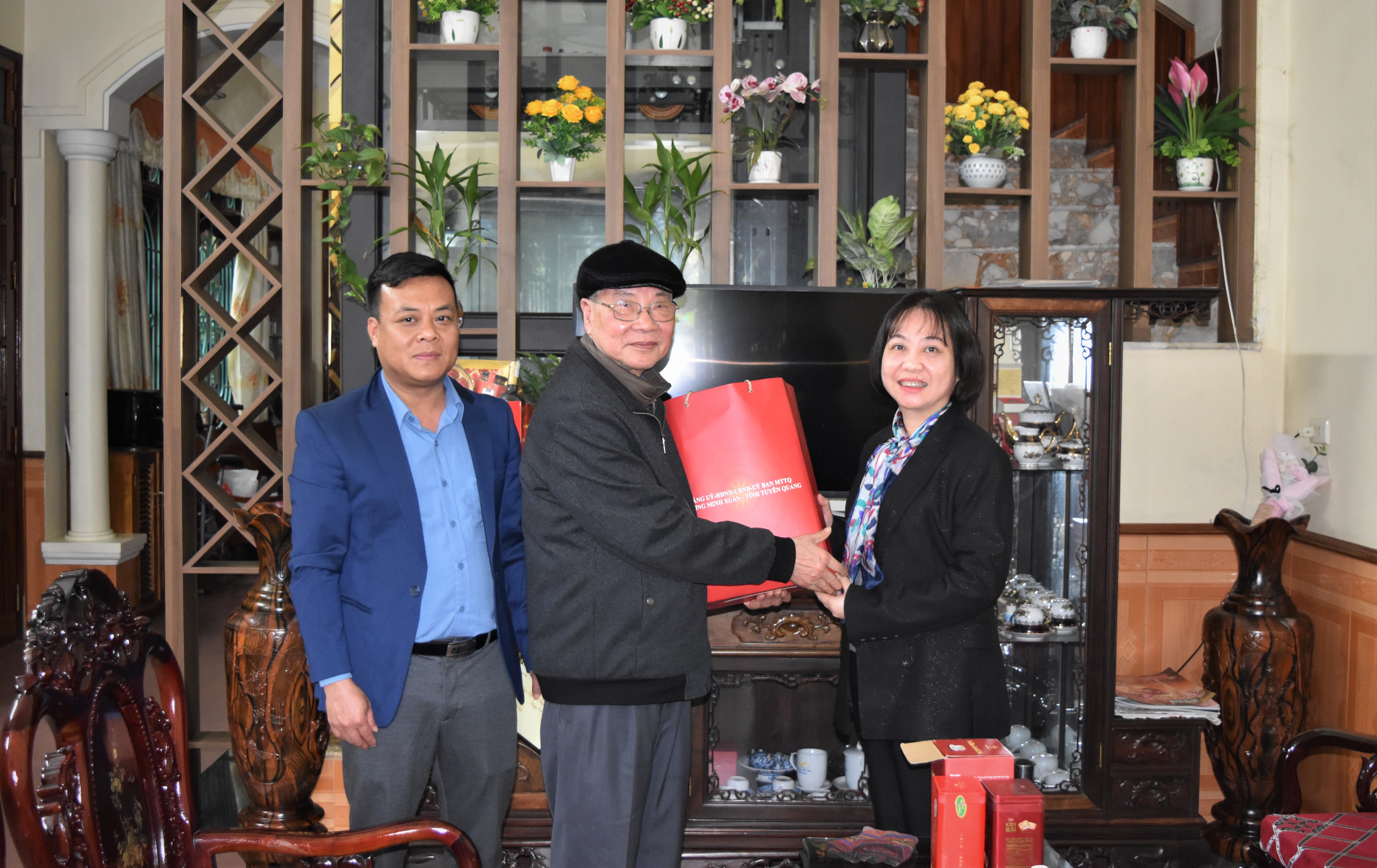 Đồng chí Phó Bí thư Thường trực Đảng ủy phường Minh Xuân Đinh Thị Thu Hà - Chúc Tết gia đình đồng chí Nguyễn Hồng Thắng, Nguyên Phó Bí thư Thường trực Tỉnh ủy