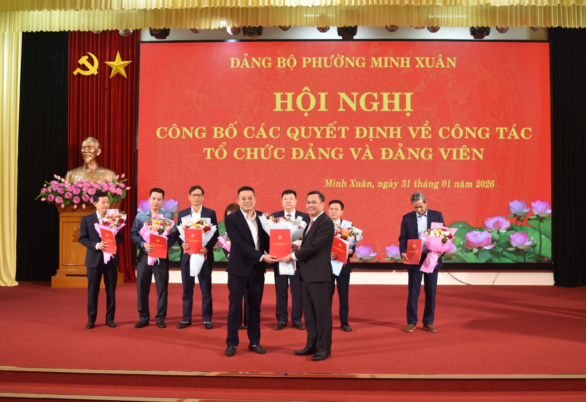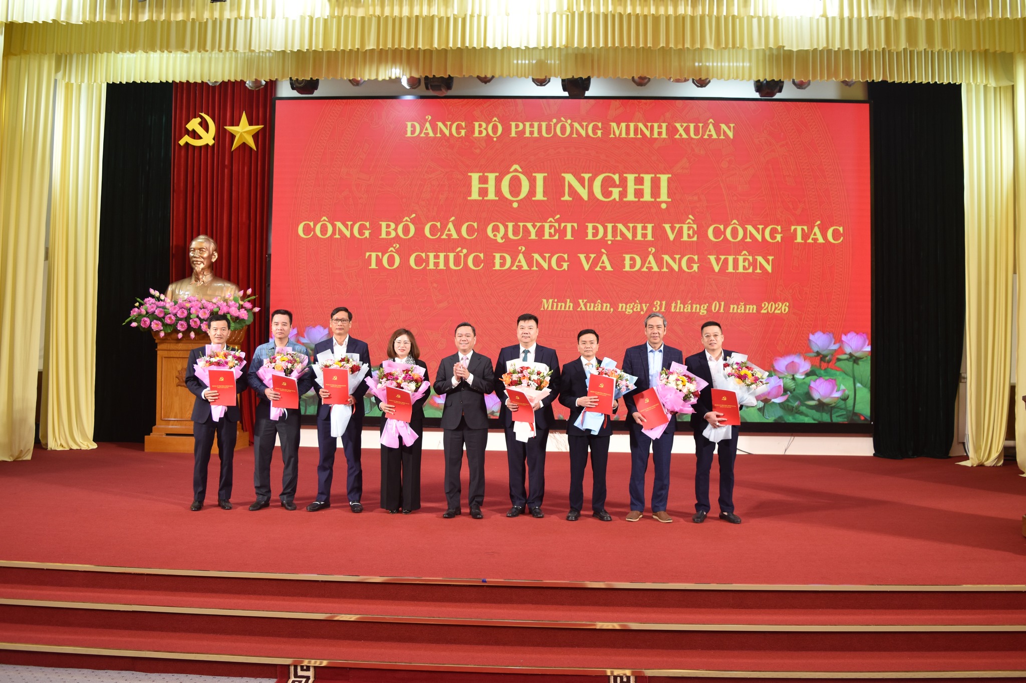 Theo các quyết định của Đảng ủy Chính phủ, quyết định của Tỉnh ủy Tuyên Quang về chuyển giao, tiếp nhận tổ chức Đảng và Đảng viên, Đảng ủy phường Minh Xuân tiếp nhận 05 tổ chức cơ sở đảng và 464 đảng viên thuộc Đảng ủy Chính phủ; 03 tổ chức cơ sở đảng và 69 đảng viên thuộc Đảng ủy Ủy ban nhân dân tỉnh Tuyên Quang về trực thuộc Đảng ủy phường Minh Xuân và đổi tên các tổ chức đảng, gồm: Đảng bộ BIDV Chi nhánh Tuyên Quang; Đảng bộ Agribank Chi nhánh Tuyên Quang; Đảng bộ Công ty Thủy điện Tuyên Quang; Đảng bộ Ngân hàng TMCP Công thương Việt Nam Chi nhánh Tuyên Quang; Chi bộ Ngân hàng TMCP Ngoại thương Việt Nam Chi nhánh Tuyên Quang; Chi bộ Chi nhánh Công nghiệp Hóa chất mỏ Hà Tuyên; Chi bộ Quỹ Đầu tư phát triển, Chi bộ Công ty trách nhiệm hữu hạn một thành viên Xổ số kiến thiết Tuyên Quang.