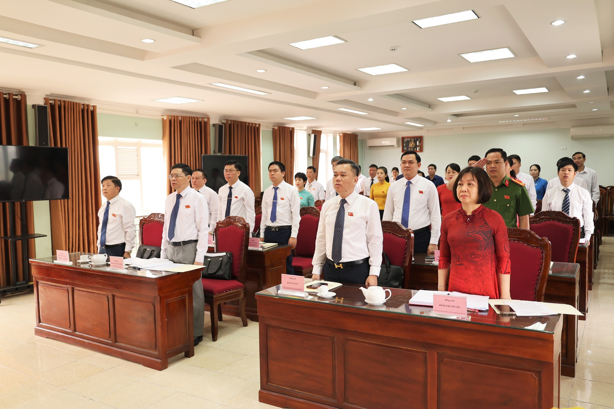 Đại biểu dự kỳ họp thực hiện nghi lễ chào cờ