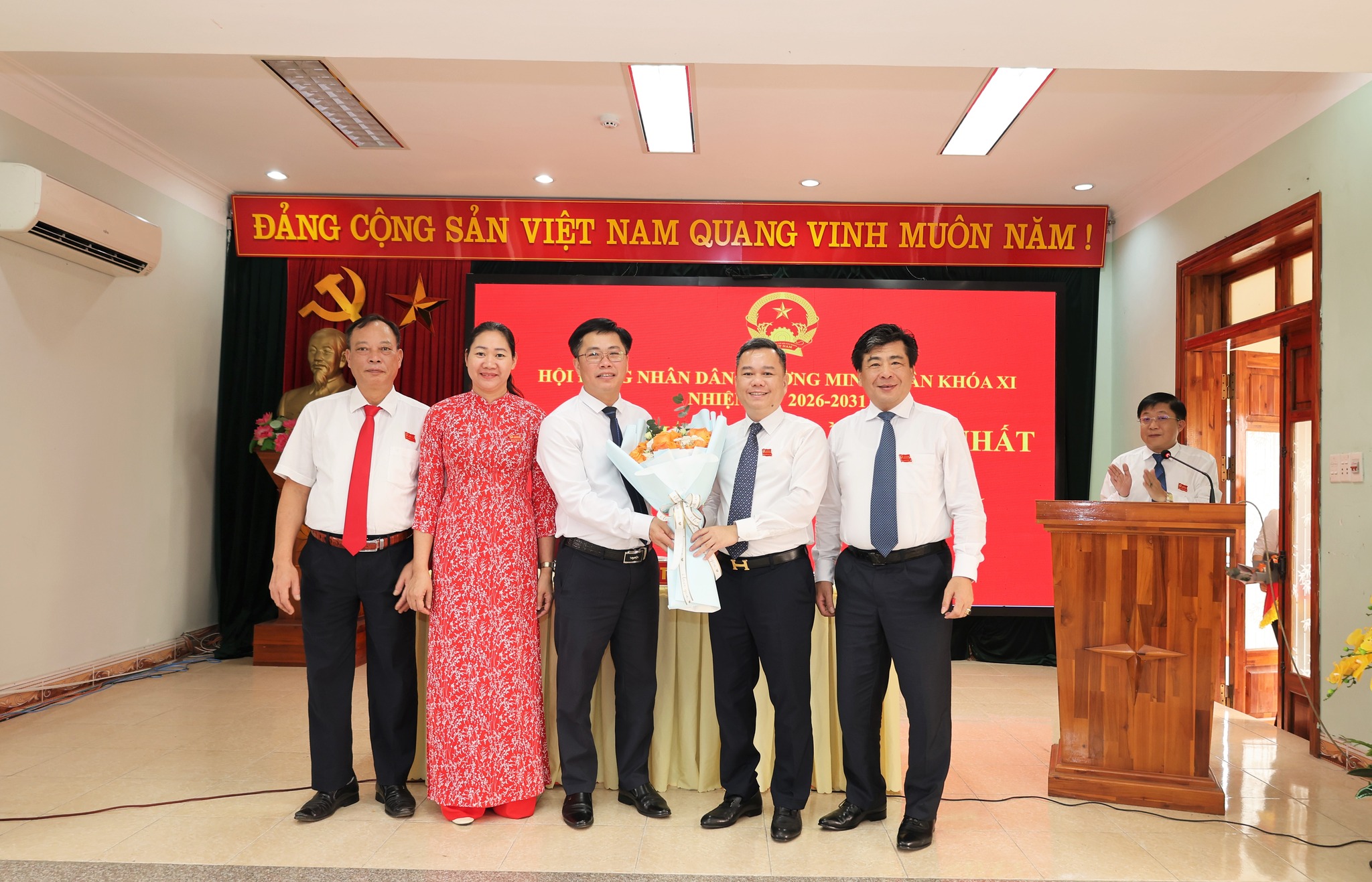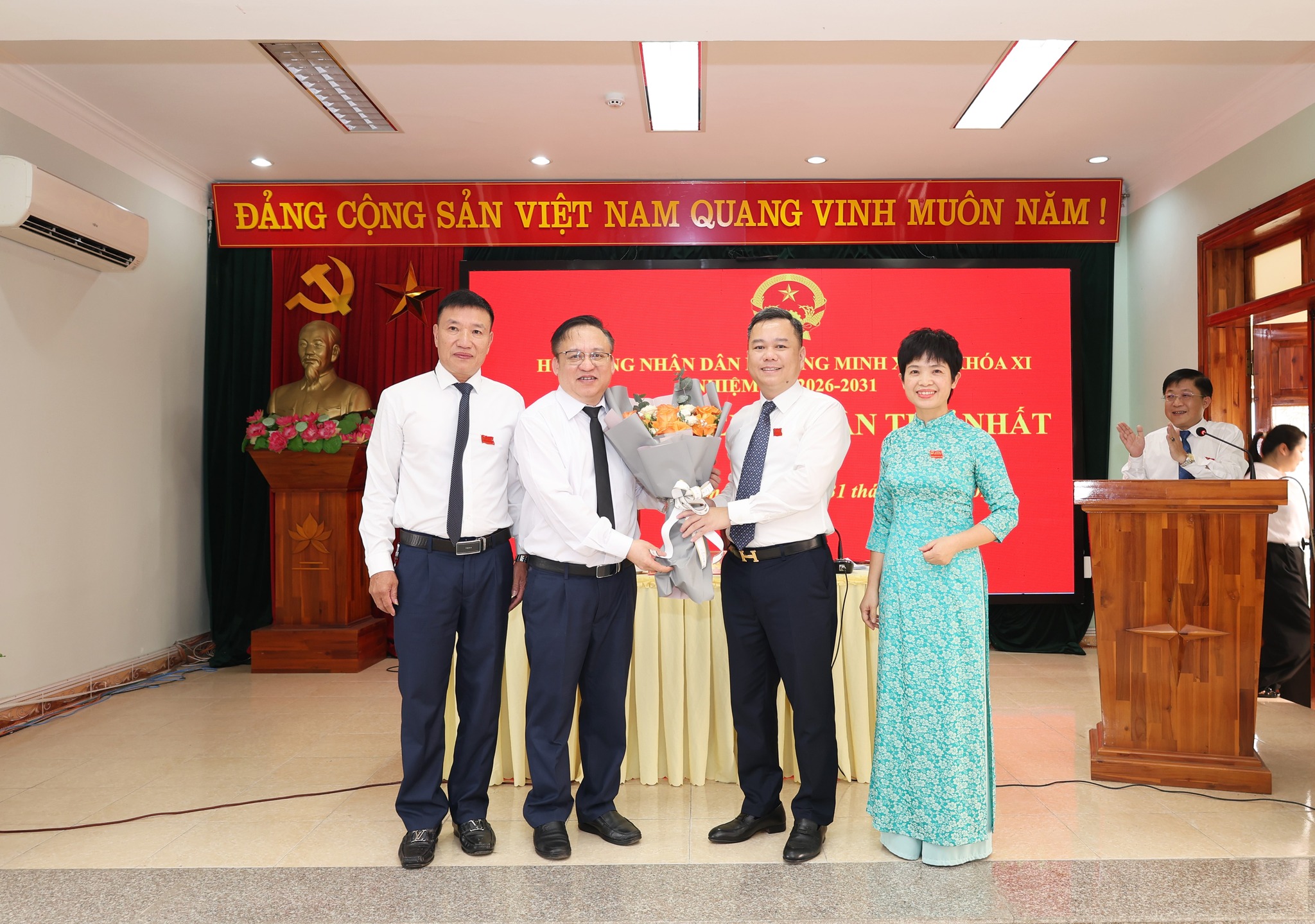 Đồng chí Bí thư Đảng uỷ, Chủ tịch HĐND phường Đỗ Hùng Đức - Tặng hoa chúc mừng Ủy viên là đại biểu HĐND hoạt động kiêm nhiệm tại Ban Văn hoá - xã hội, HĐND phường Minh Xuân khóa XI, nhiệm kỳ 2026 – 2031.