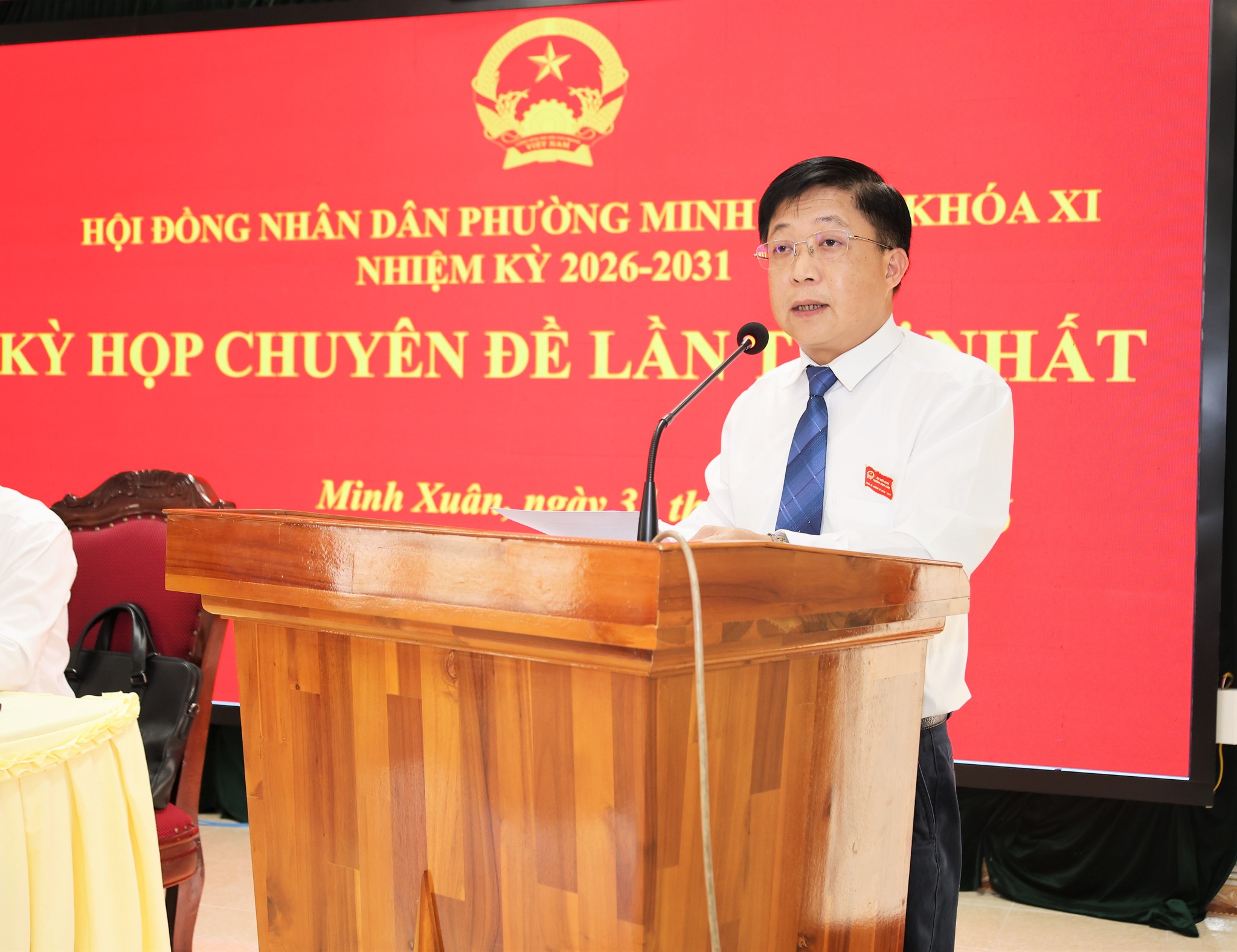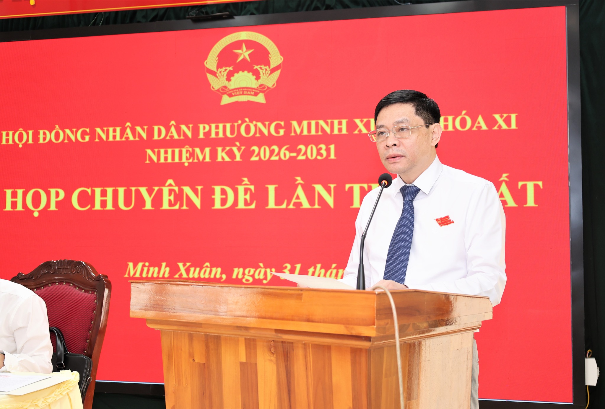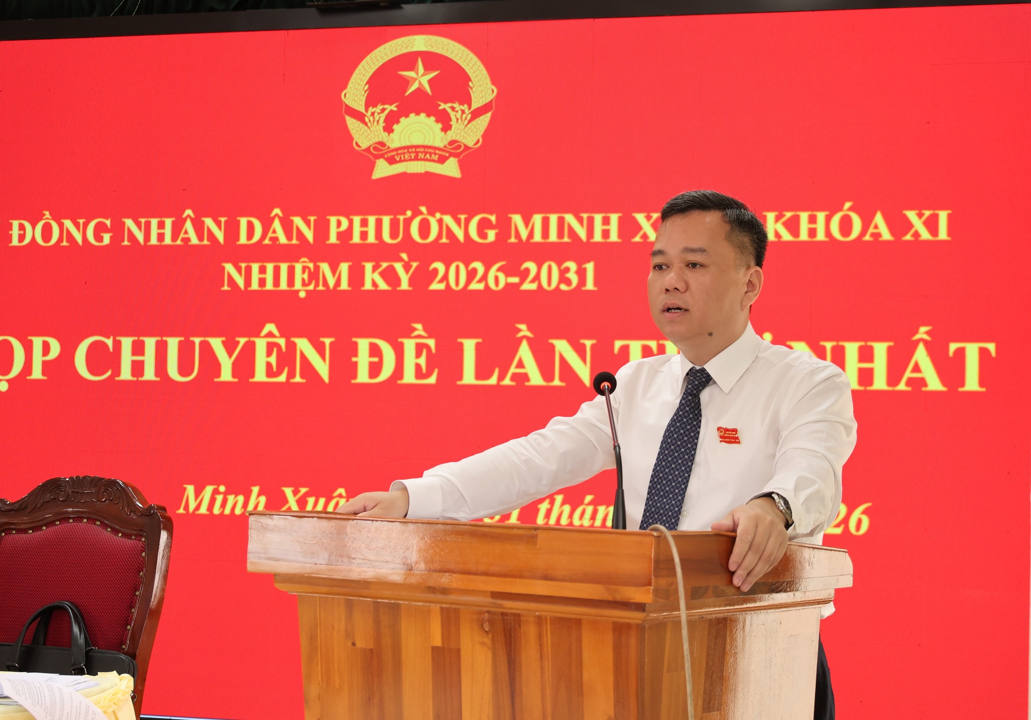 Tại kỳ họp, Hội đồng nhân dân phường đã xem xét, thảo luận và thông qua các nghị quyết quan trọng, gồm: Nghị quyết phê chuẩn số lượng và danh sách Phó Trưởng ban, Ủy viên hoạt động kiêm nhiệm các Ban của Hội đồng nhân dân phường khóa XI; Nghị quyết thành lập các Tổ đại biểu và chỉ định Tổ trưởng, Tổ phó các Tổ đại biểu Hội đồng nhân dân phường khóa XI; Nghị quyết ban hành Quy chế làm việc của Hội đồng nhân dân phường khóa XI, nhiệm kỳ 2026–2031; Nghị quyết về các biện pháp bảo đảm thực hiện dân chủ ở cơ sở trên địa bàn; Nghị quyết về tạm giao biên chế đối với Trạm Y tế phường Minh Xuân năm 2026; Nghị quyết phê chuẩn quyết toán thu ngân sách nhà nước, chi ngân sách phường năm 2025; Nghị quyết điều chỉnh, bổ sung kế hoạch đầu tư công giai đoạn 2026–2031.