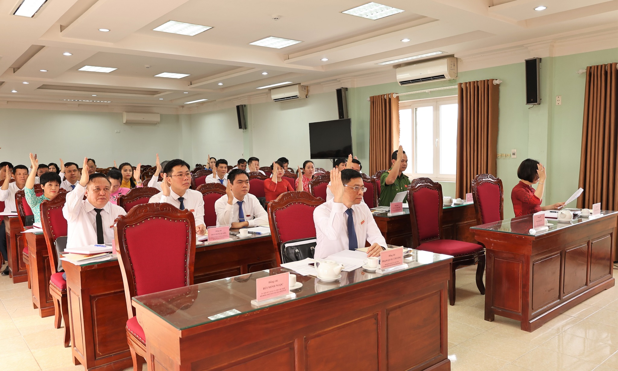 Đại biểu dự kỳ họp biểu tiến hành biểu quyết thông qua dự thảo Nghị quyết trình tại kỳ họp