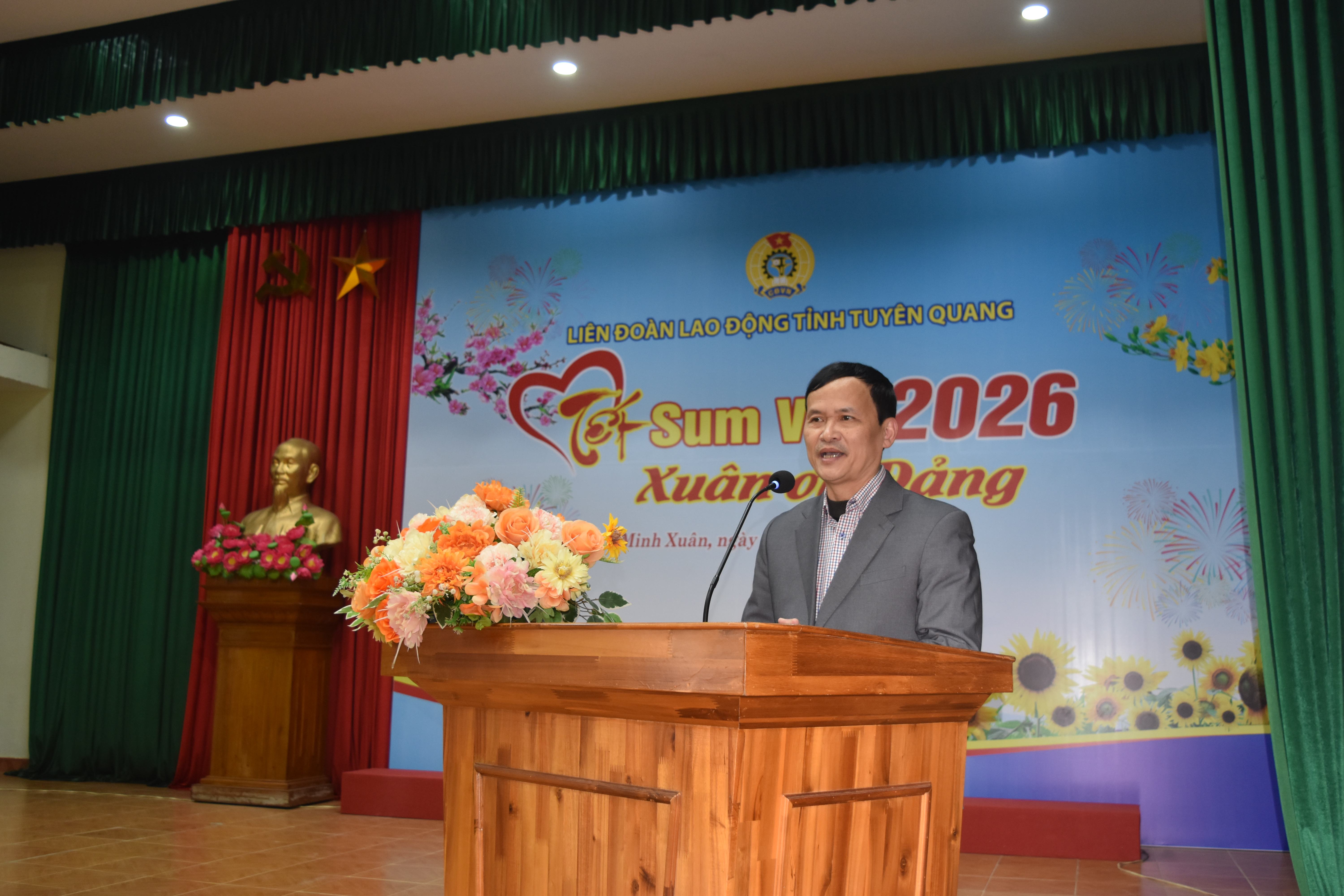 Phát biểu tại chương trình, đồng chí Triệu Tài Phong, Ủy viên Ban Chấp hành Đảng bộ tỉnh, Phó Chủ tịch Ủy ban Mặt trận Tổ quốc tỉnh, Chủ tịch LĐLĐ tỉnh nhấn mạnh: “Tết Sum vầy” là hoạt động mang đậm dấu ấn của tổ chức Công đoàn, được duy trì nhiều năm qua, thể hiện truyền thống đoàn kết, tương thân tương ái, chăm lo đời sống đoàn viên, người lao động. Thông qua chương trình, Công đoàn mong muốn gửi gắm tình cảm, trách nhiệm của Đảng, Nhà nước, của tổ chức Công đoàn và toàn xã hội đối với lực lượng công nhân, viên chức, lao động những người trực tiếp đóng góp cho sự phát triển kinh tế - xã hội của tỉnh.