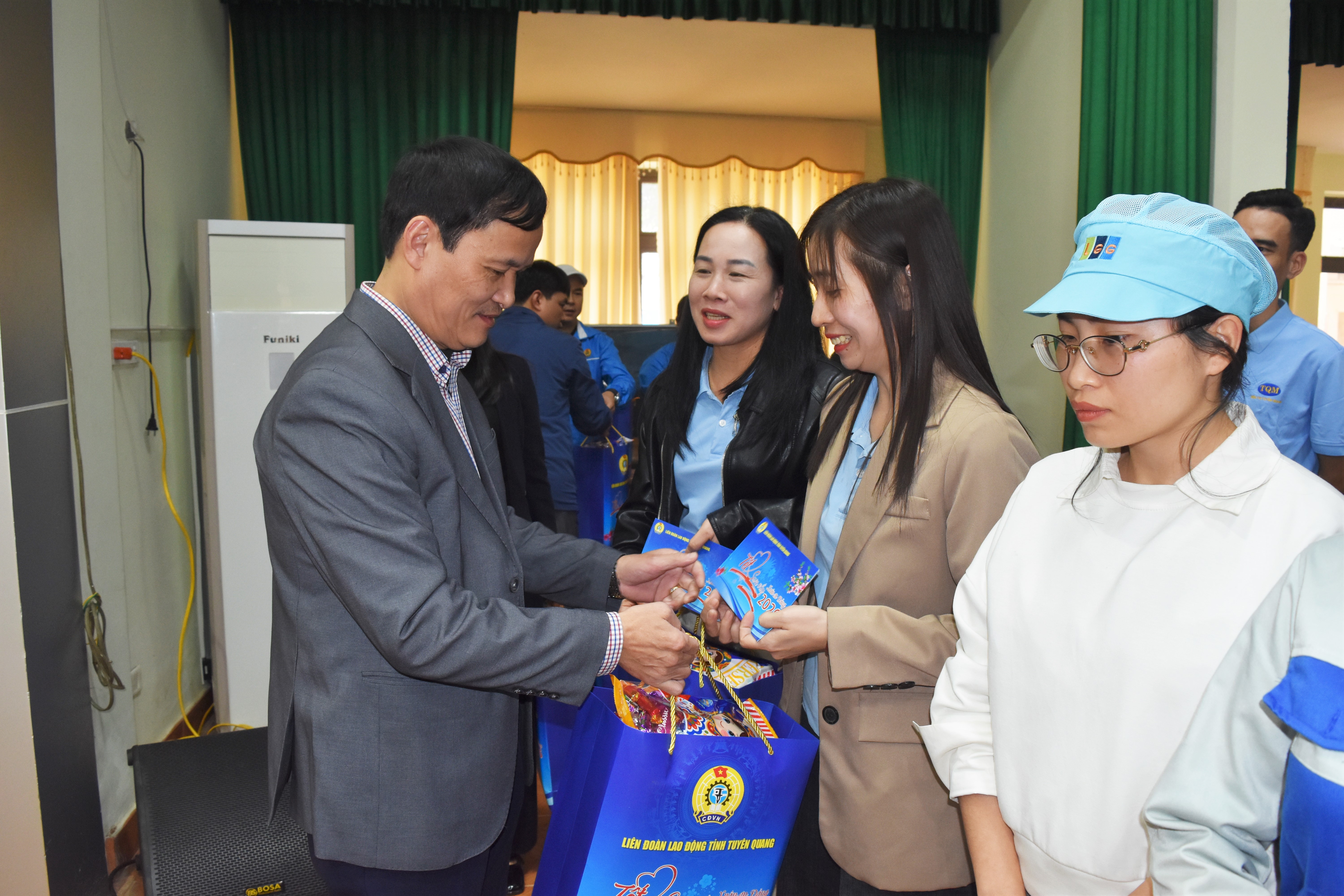 Đ/c Chủ tịch Liên đoàn Lao động tỉnh Triệu Tài Phong - Trao quà cho các đoàn viên công đoàn