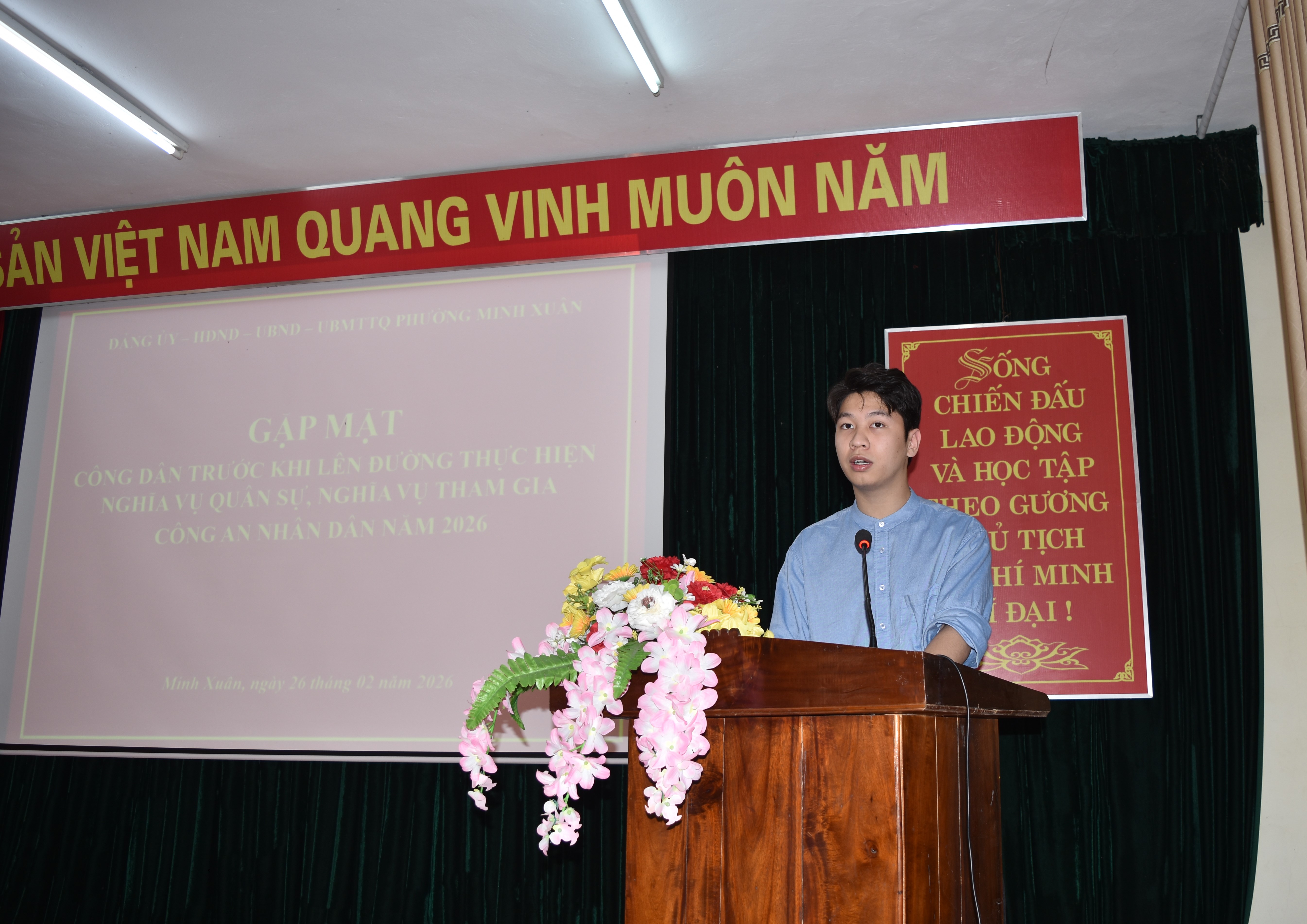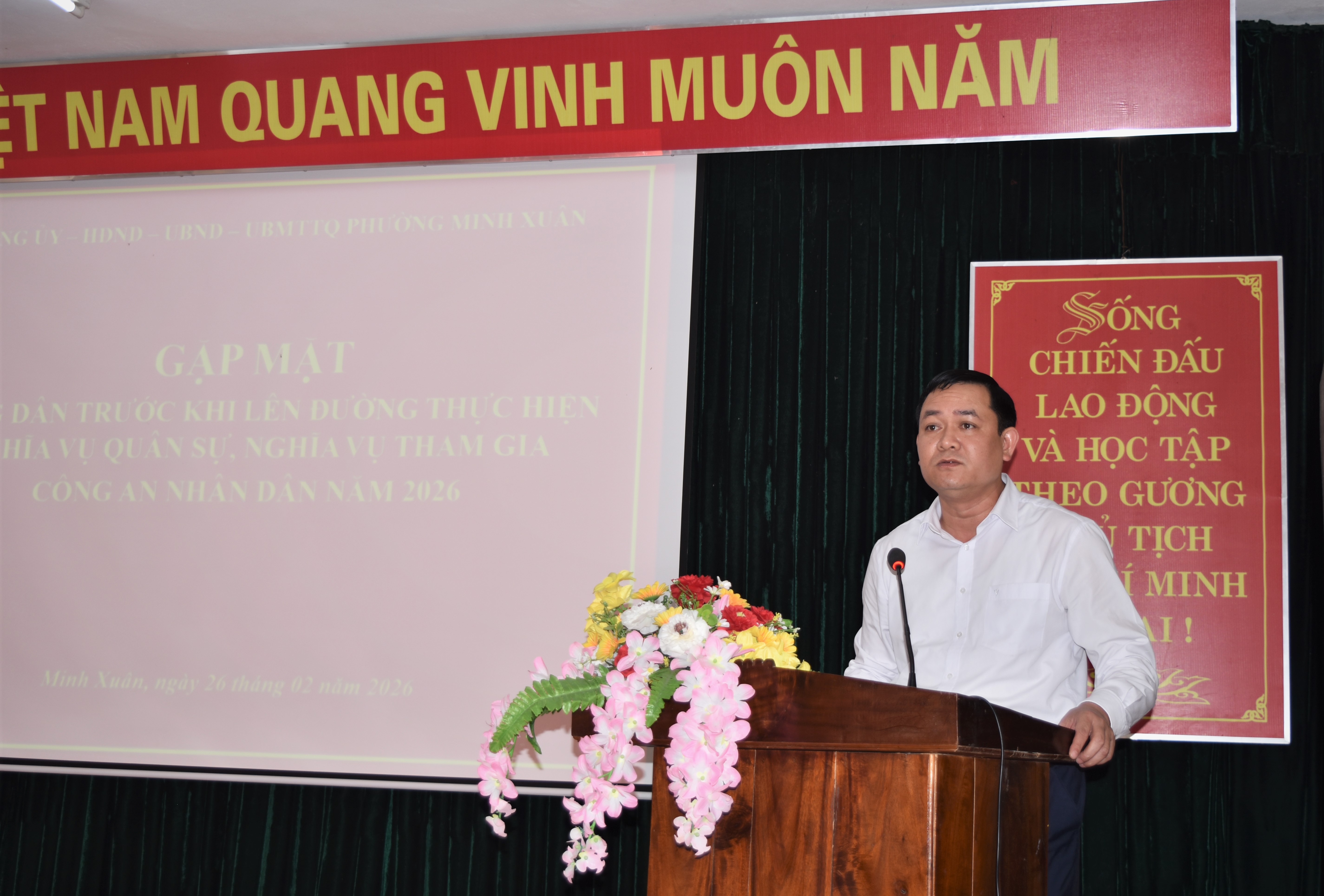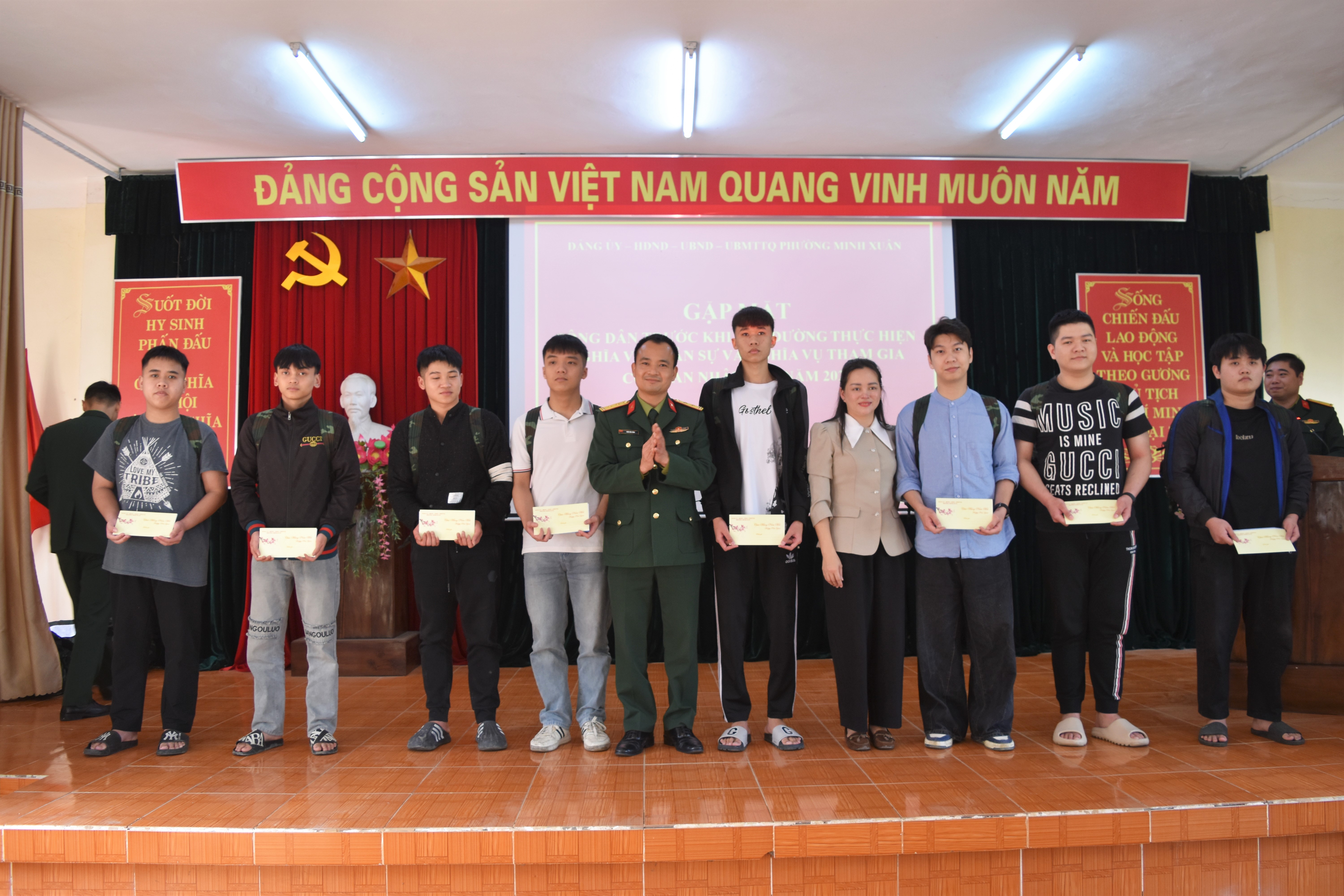 Buổi gặp mặt diễn ra trong không khí trang trọng, ấm áp và đầy khí thế, khẳng định quyết tâm của tuổi trẻ Minh Xuân sẵn sàng lên đường bảo vệ Tổ quốc, viết tiếp truyền thống vẻ vang của quê hương.