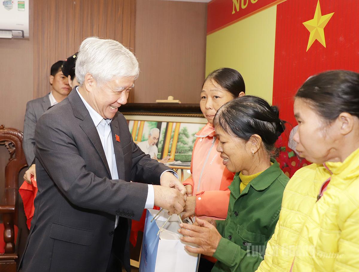 Phó Chủ tịch Thường trực Quốc hội Đỗ Văn Chiến và Chủ nhiệm Uỷ ban Văn hoá - Xã hội của Quốc hội Nguyễn Đắc Vinh tặng quà các gia đình chính sách xã Tân Trào.