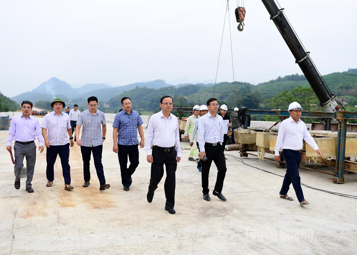 Phó Chủ tịch Thường trực UBND tỉnh Nguyễn Mạnh Tuấn đánh giá cao các cấp, các ngành, Ban Quản lý Dự án đầu tư xây dựng công trình số 1 tỉnh, các nhà thầu, đơn vị tư vấn, công nhân và nhân dân đã nỗ lực trong triển khai dự án. Bên cạnh sự nỗ lực đó, tiến độ thi công tại một số gói thầu chưa đạt yêu cầu đặt ra. Đồng chí nhấn mạnh, từ nay đến cuối năm phải hoàn thành thông tuyến kỹ thuật theo đúng cam kết của tỉnh với Chính phủ, vì vậy, Ban Quản lý Dự án đầu tư xây dựng công trình số 1 phải phân công lãnh đạo phụ trách trực tiếp chỉ đạo từng gói thầu nhằm đẩy nhanh tiến độ. Đối với các nhà thầu, tranh thủ thời tiết thuận lợi tập trung máy móc, thi công “3 ca 4 kíp” dồn tổng lực thi công công trình, đồng thời yêu cầu nhà thầu thi công, nếu nhà thầu nào chậm phải có biện pháp xử lý. Với gói thầu xây dựng cầu trên toàn tuyến, đồng chí Phó Chủ tịch Thường trực UBND tỉnh Nguyễn Mạnh Tuấn yêu cầu đơn vị Tập đoàn Đèo Cả cần thi công khẩn trương các hạng mục còn lại, trong quá trình thi công cần đảm bảo kỹ, mỹ thuật và đảm bảo an toàn tuyệt đối.