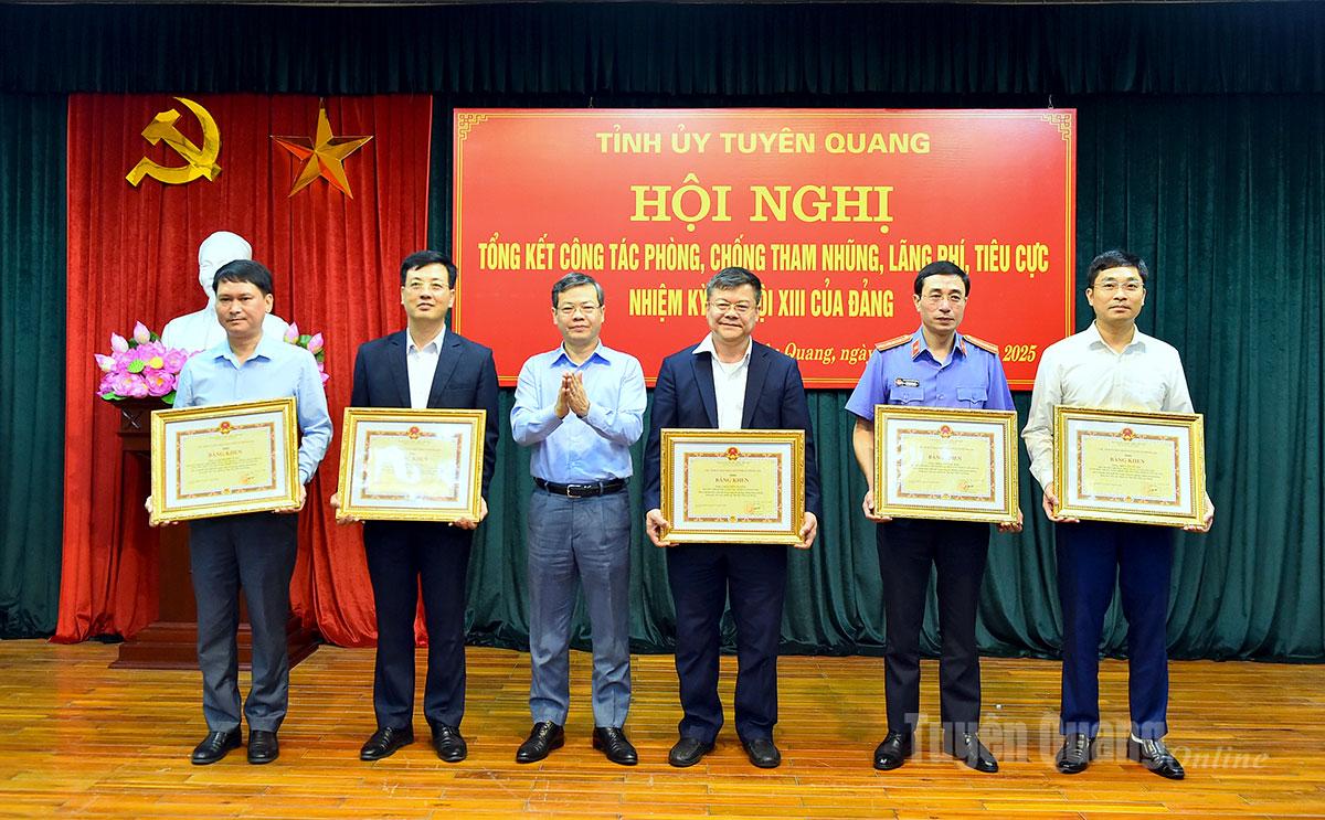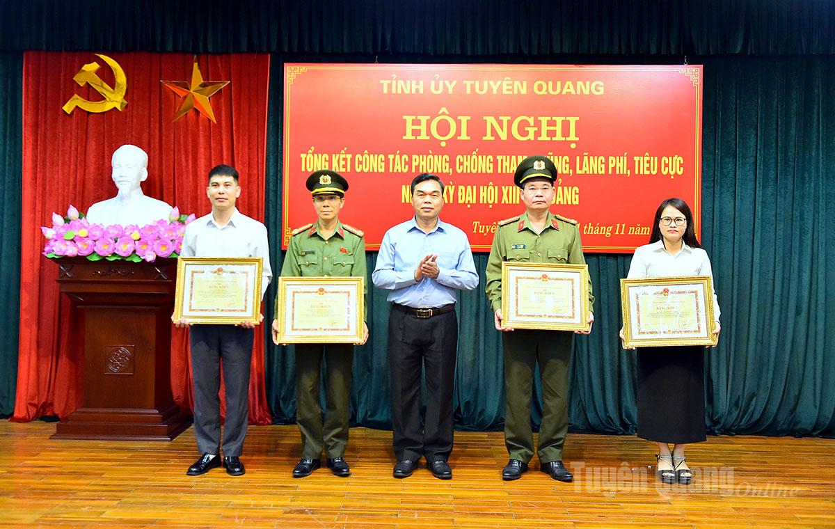 Hội nghị đã công bố và trao Bằng khen của Chủ tịch UBND tỉnh cho 9 tập thể và 11 cá nhân đã có thành tích xuất sắc trong công tác PCTN, LP, TC nhiệm kỳ Đại hội XIII của Đảng.