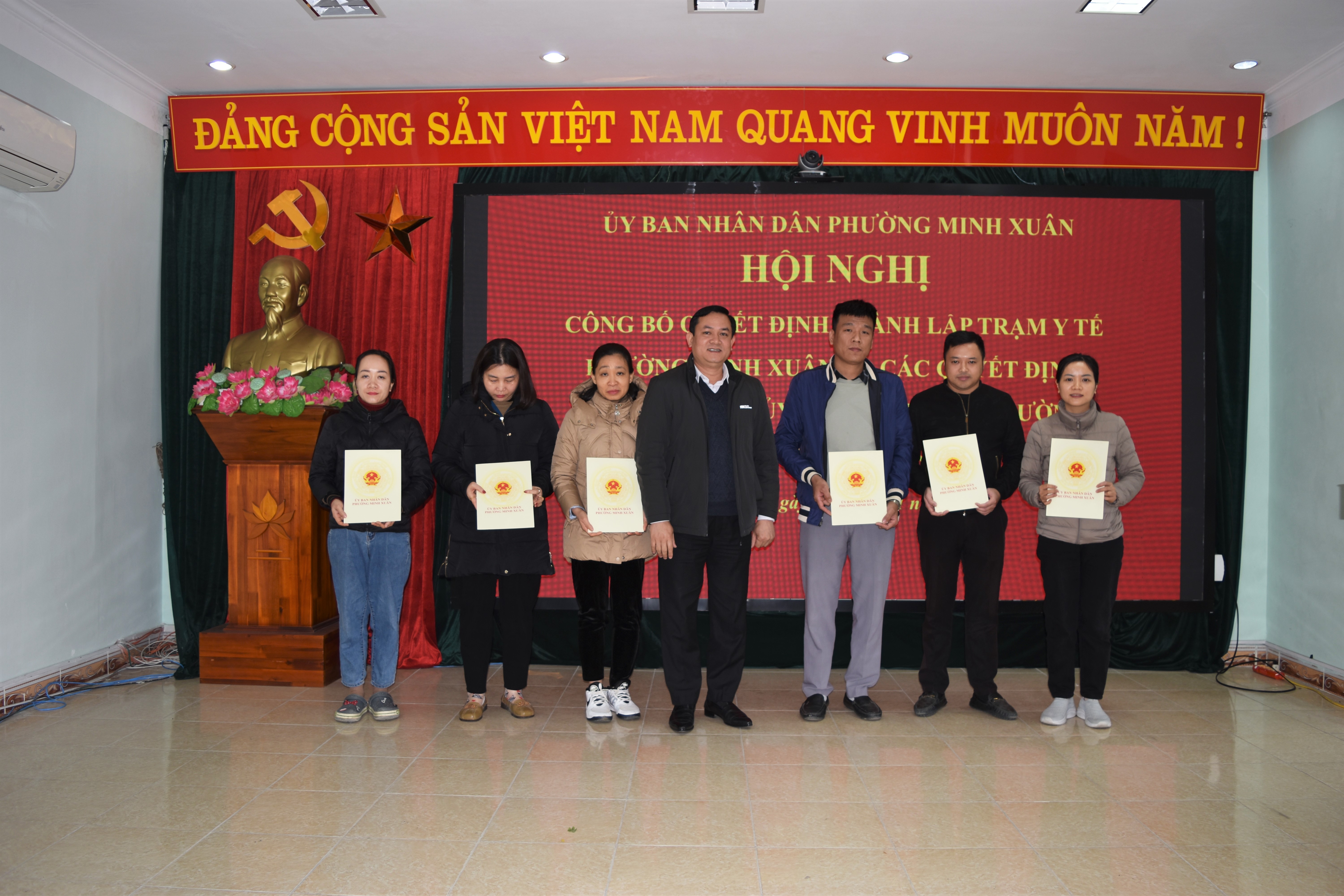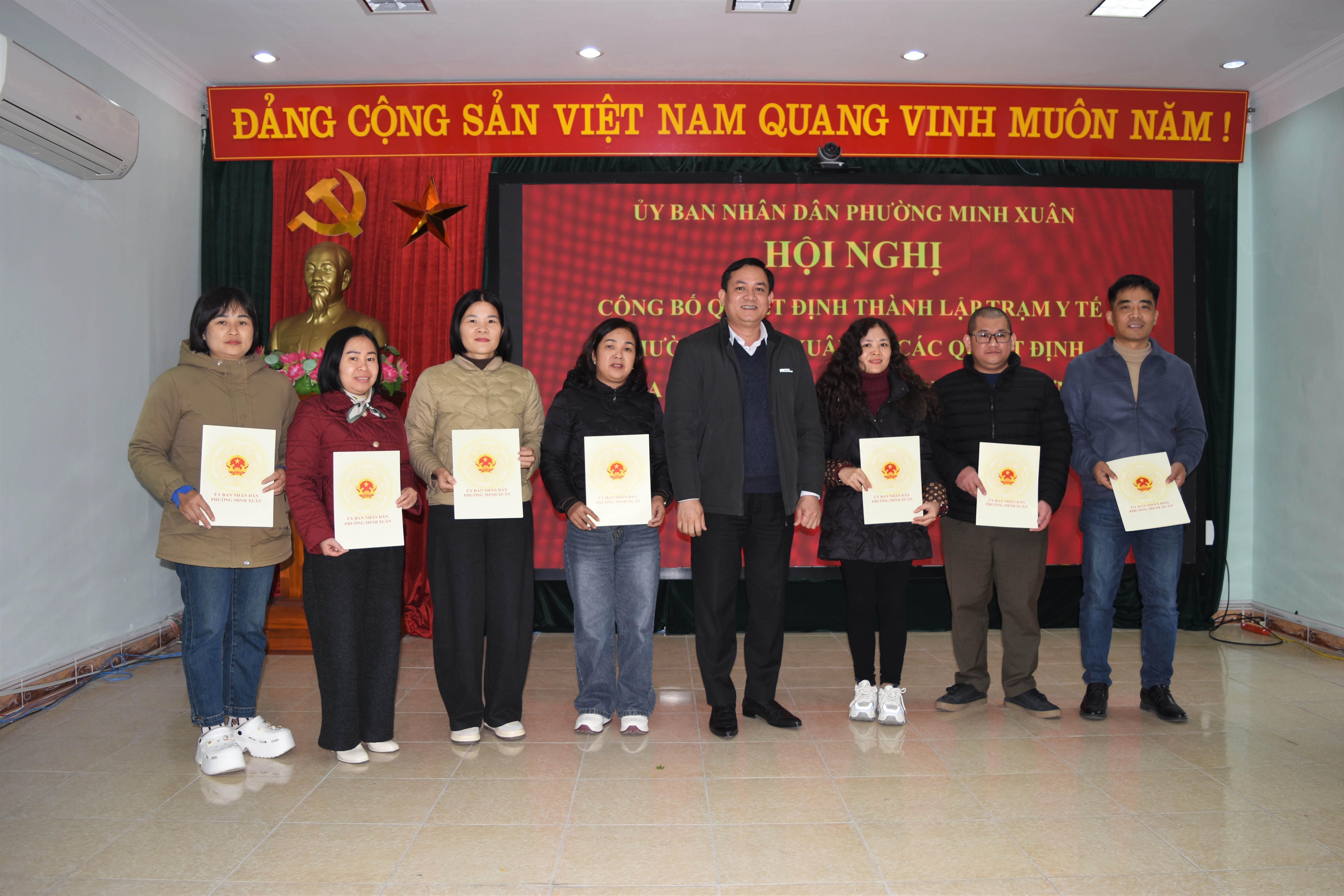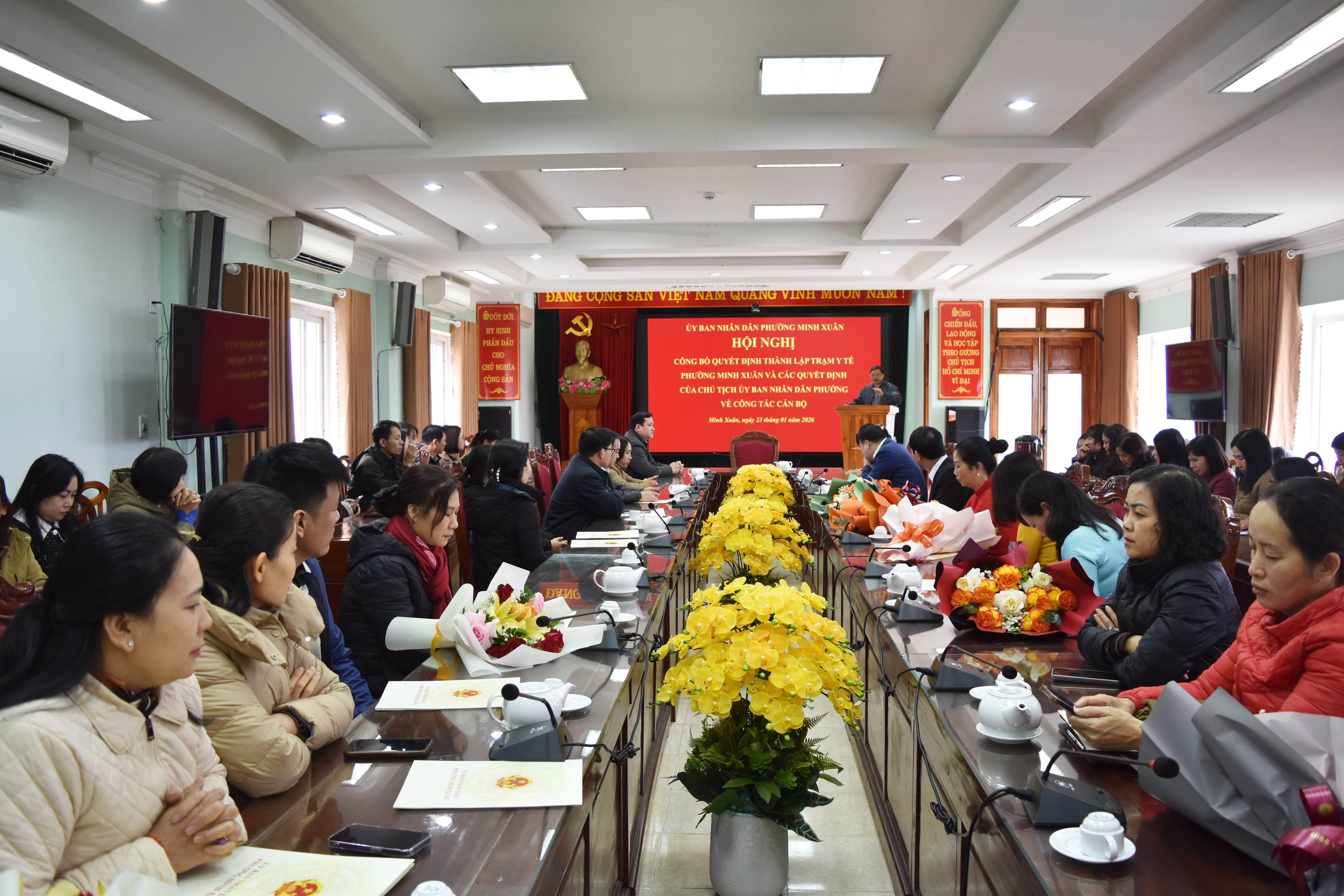 Tại hội nghị, lãnh đạo Phòng Văn hóa - Xã hội đã công bố Quyết định của UBND phường Minh Xuân về việc thành lập Trạm Y tế phường Minh Xuân và 38 Quyết định tiếp nhận, bố trí viên chức về Trạm Y tế phường Minh Xuân.
