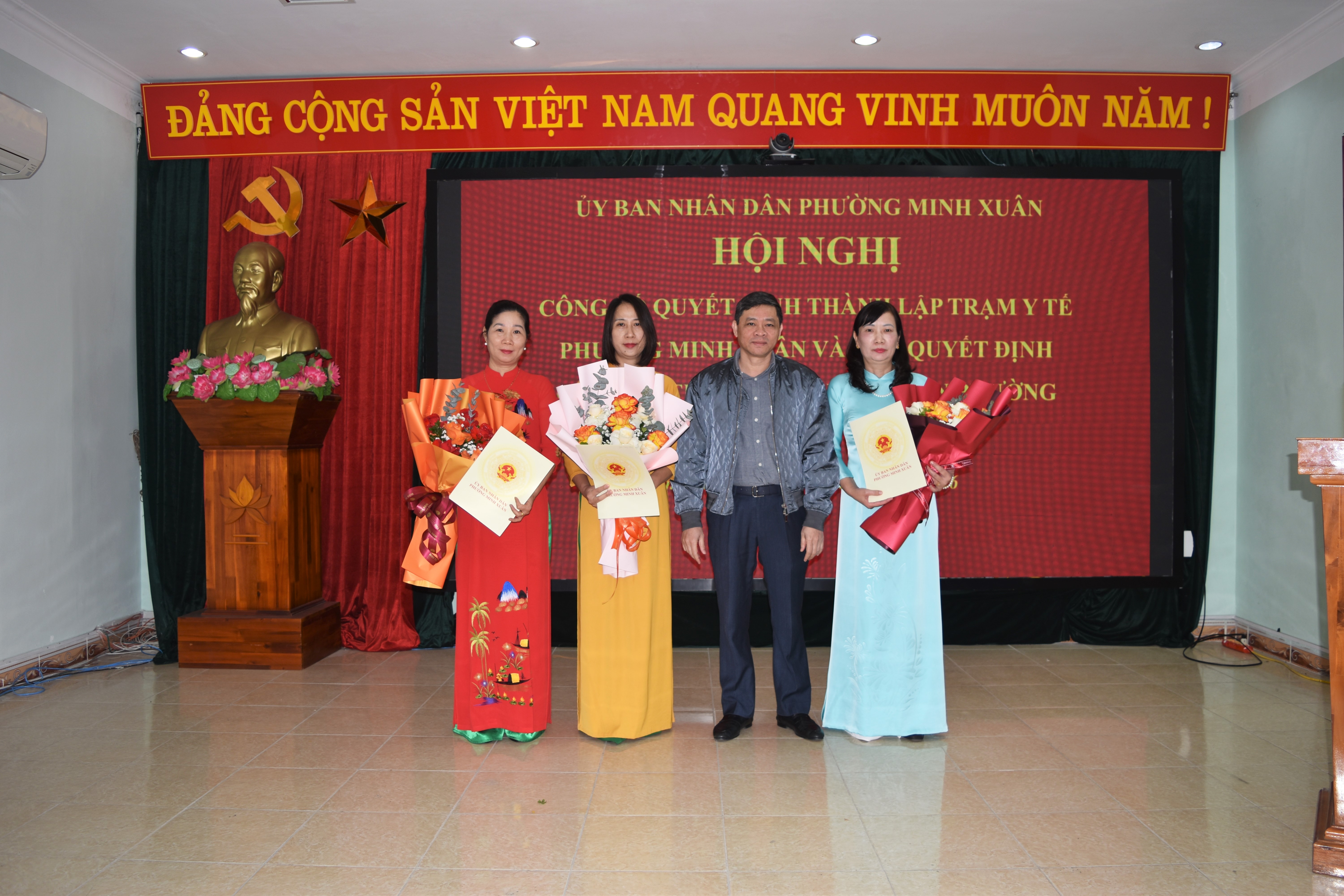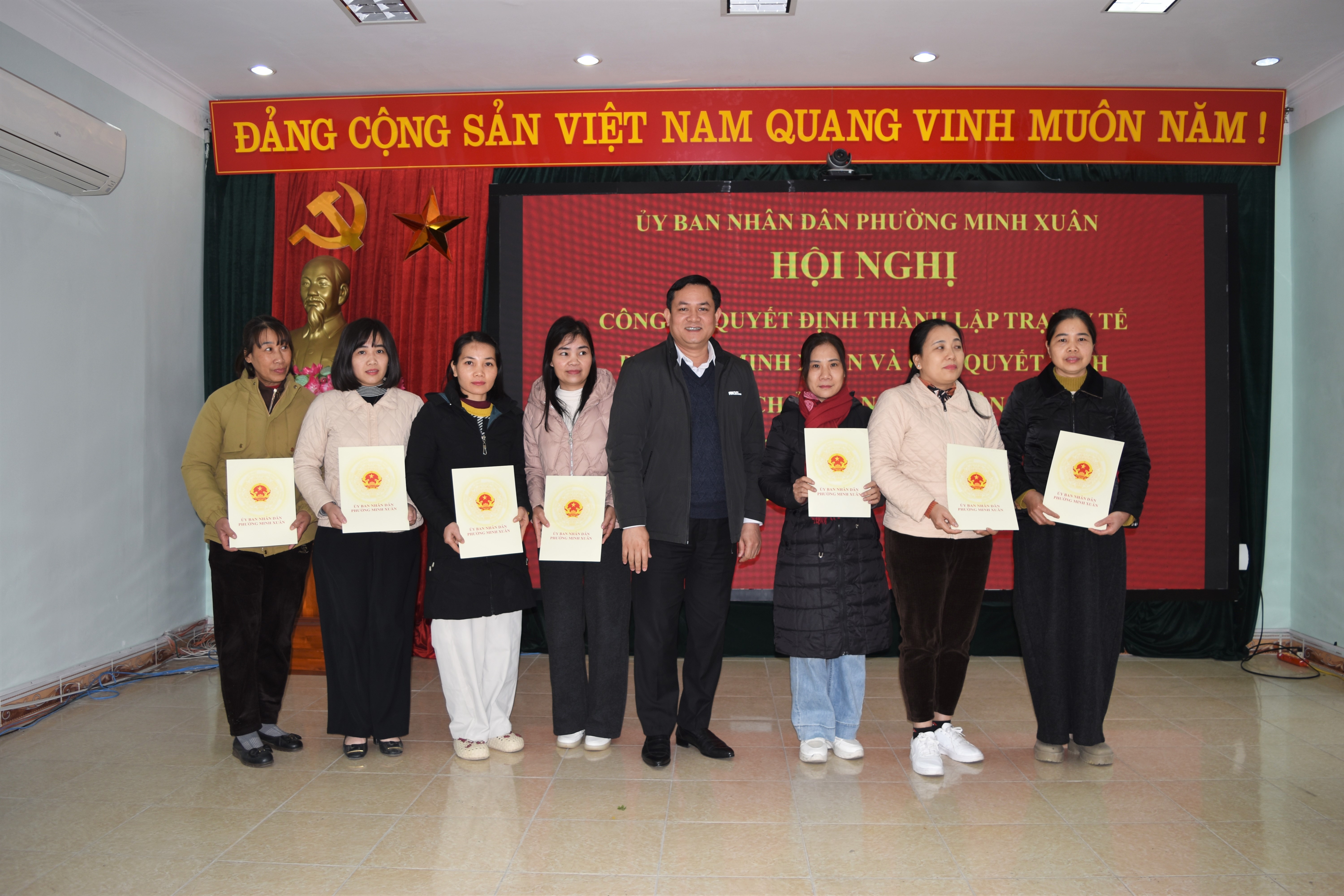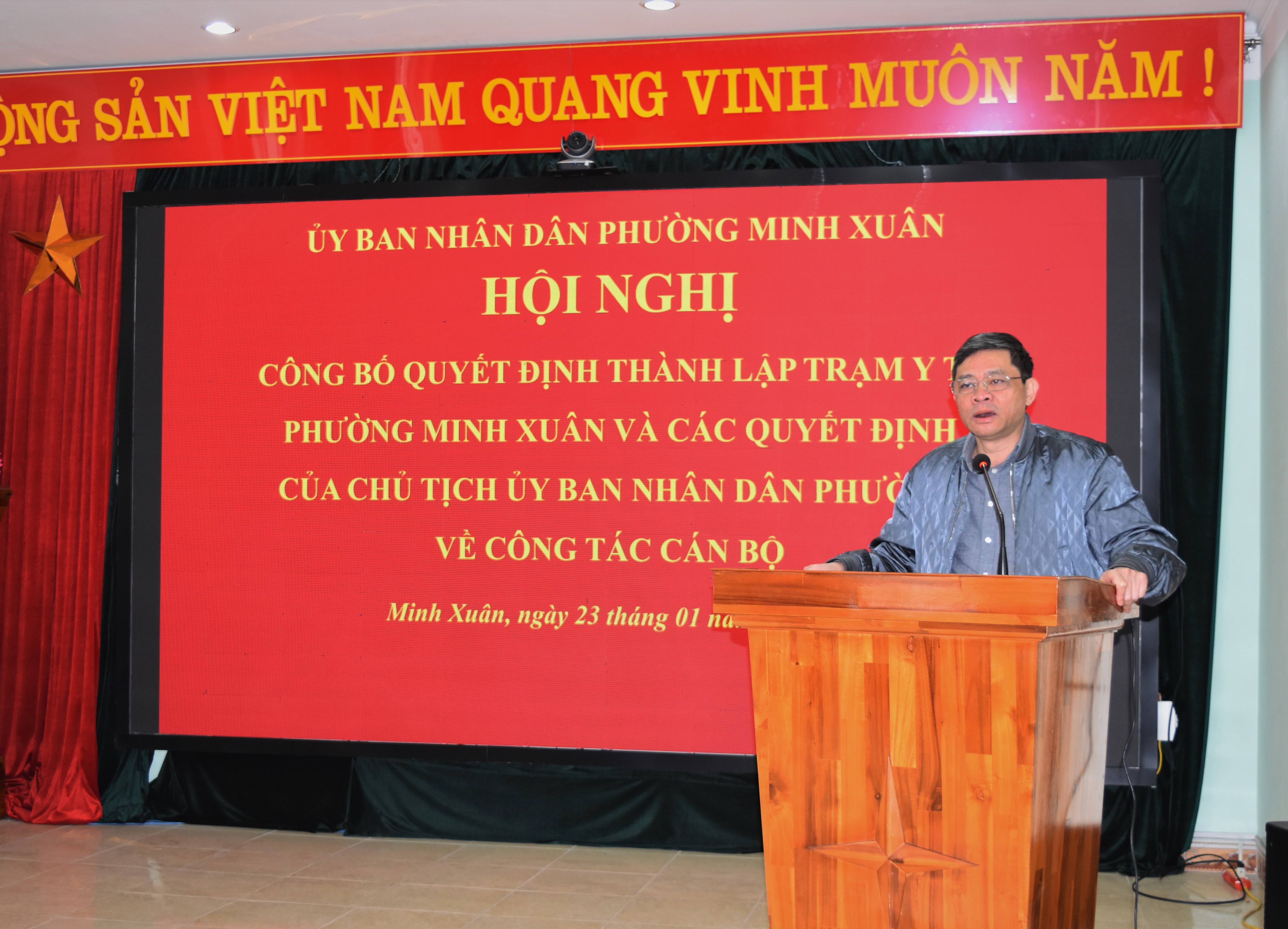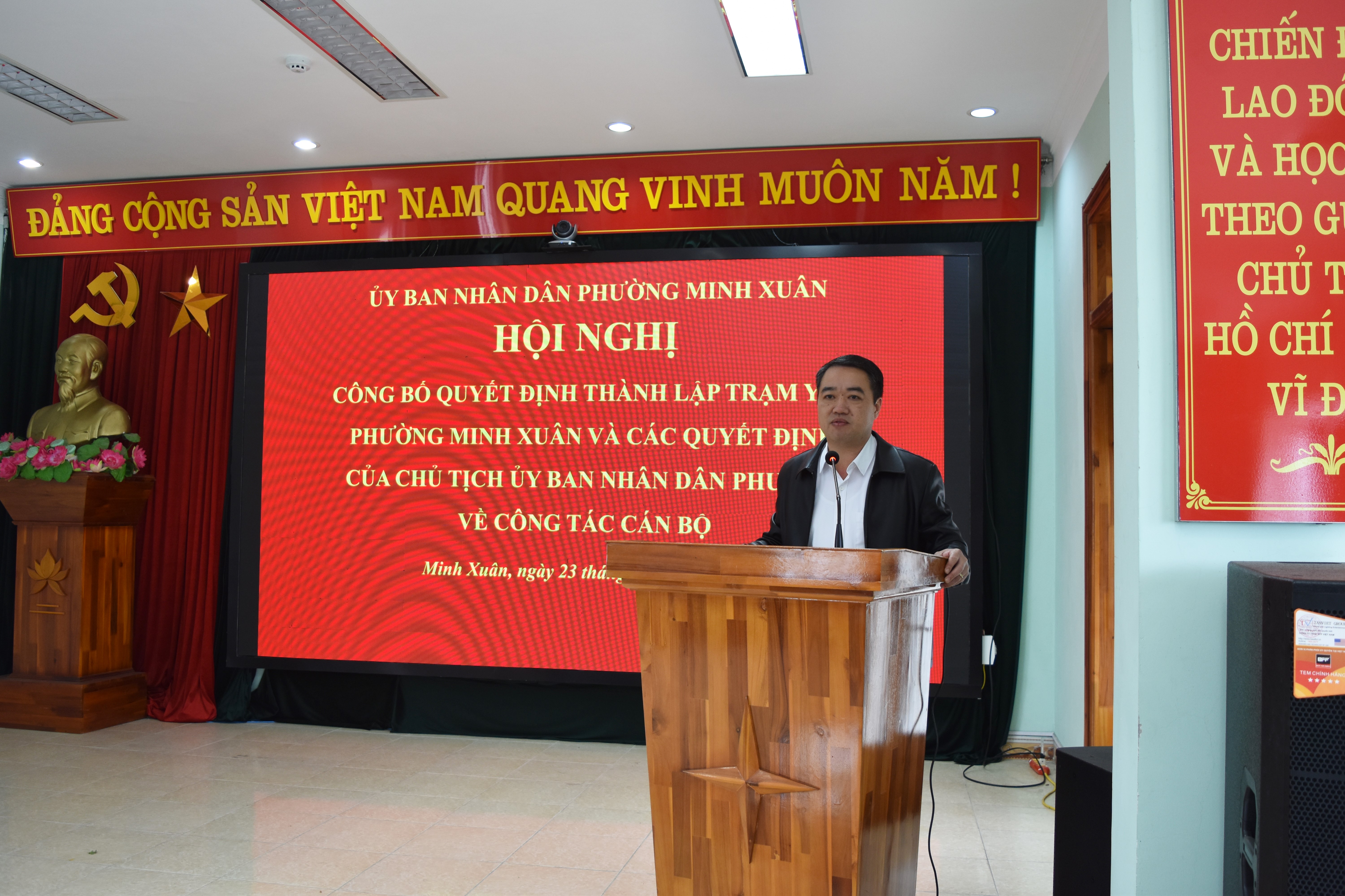 Tại hội nghị, lãnh đạo Phòng Văn hóa - Xã hội đã công bố Quyết định của UBND phường Minh Xuân về việc thành lập Trạm Y tế phường Minh Xuân và 38 Quyết định tiếp nhận, bố trí viên chức về Trạm Y tế phường Minh Xuân.