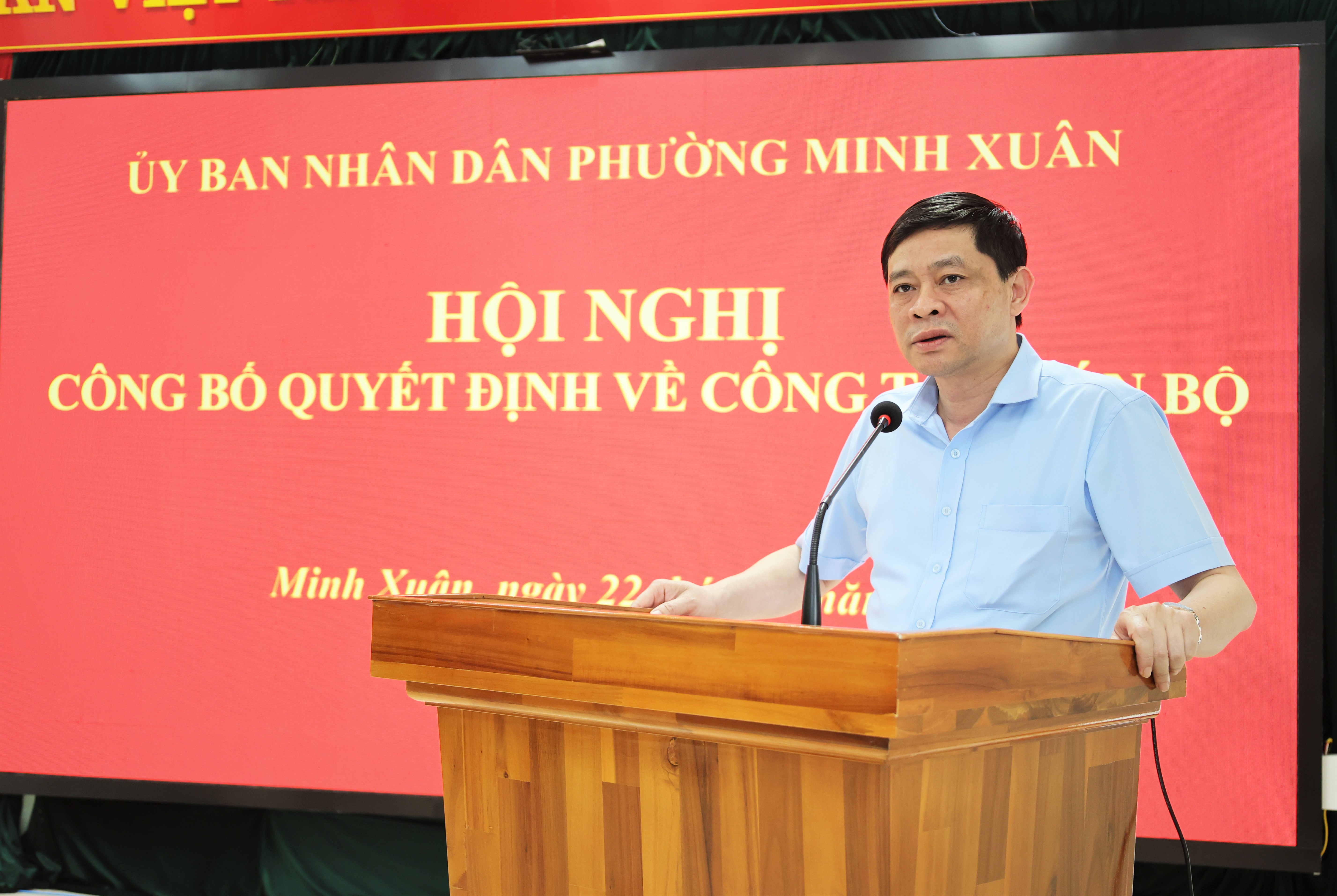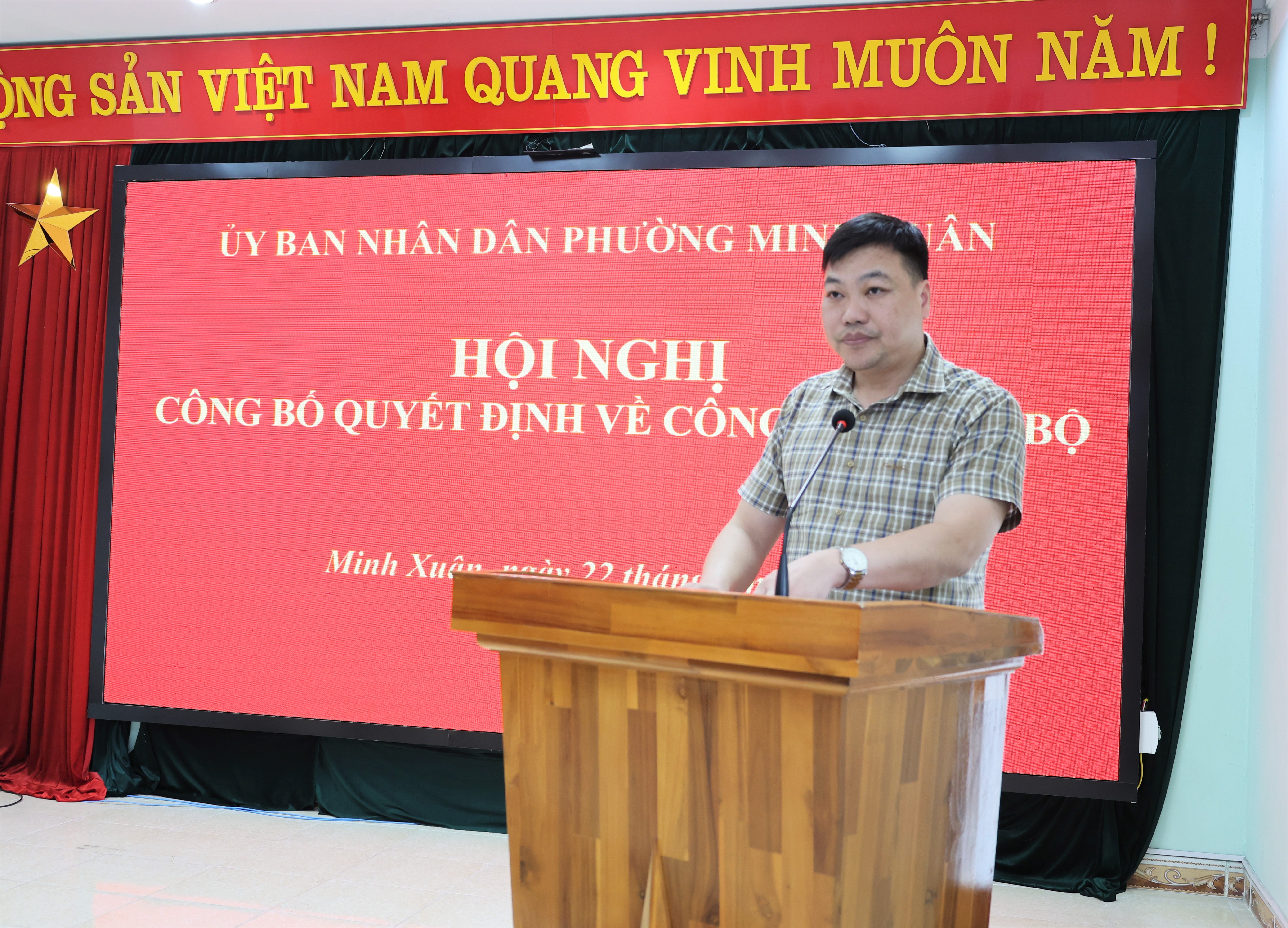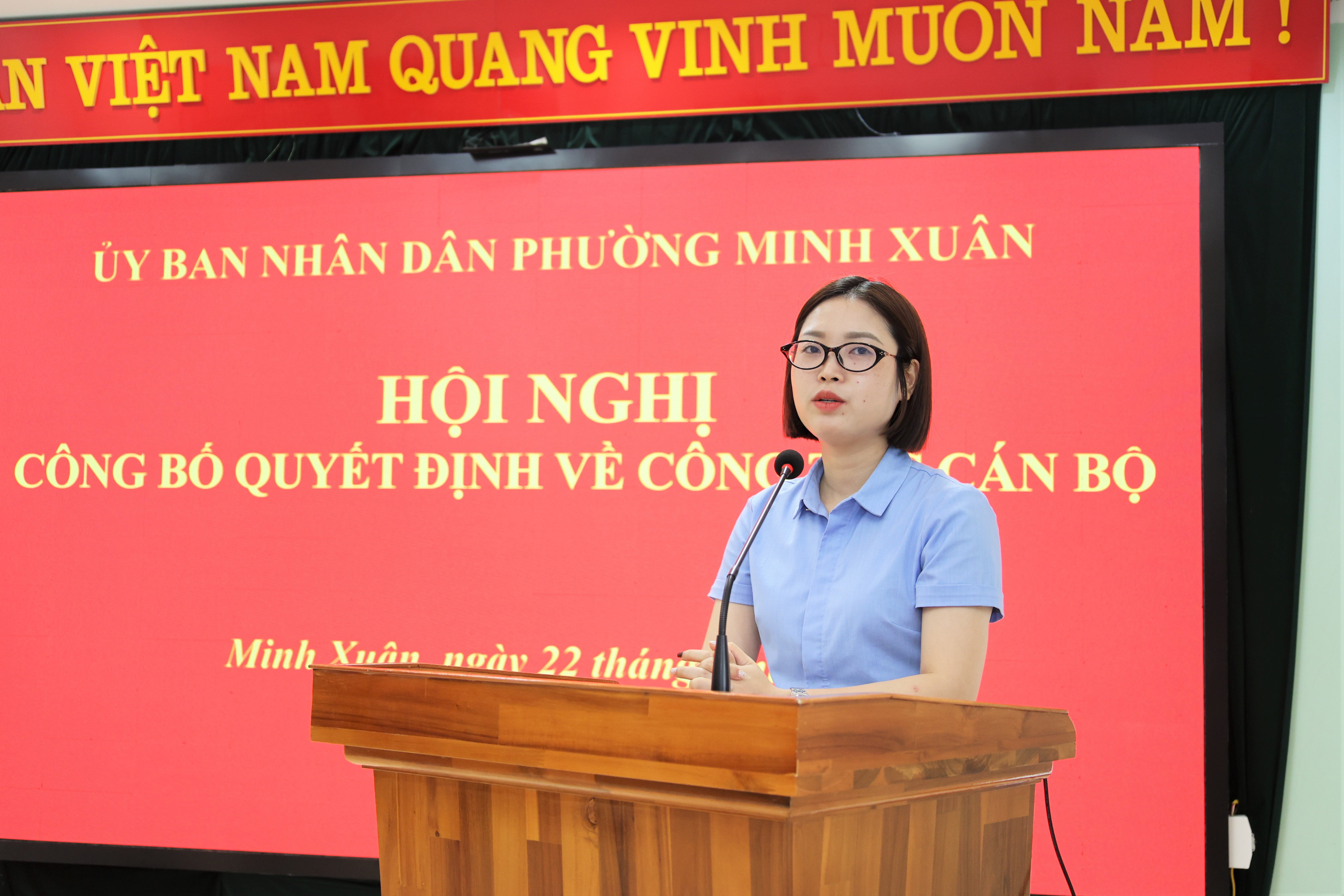 Tại hội nghị, đồng chí Ngô Tuấn Anh, Ủy viên Ban Chấp hành Đảng bộ phường, Trưởng phòng Văn hóa – Xã hội phường đã công bố Quyết định của Chủ tịch Ủy ban nhân dân phường về công tác cán bộ. Theo đó, Quyết định bổ nhiệm có thời hạn 5 năm đối với bà Nguyễn Phương Thảo; trình độ chuyên môn: Thạc sĩ Luật kinh tế, Đại học Kinh tế Quốc dân; trình độ lý luận chính trị: Trung cấp; hiện là chuyên viên Trung tâm Phục vụ hành chính công, giữ chức vụ Phó Giám đốc Trung tâm Phục vụ hành chính công phường Minh Xuân.