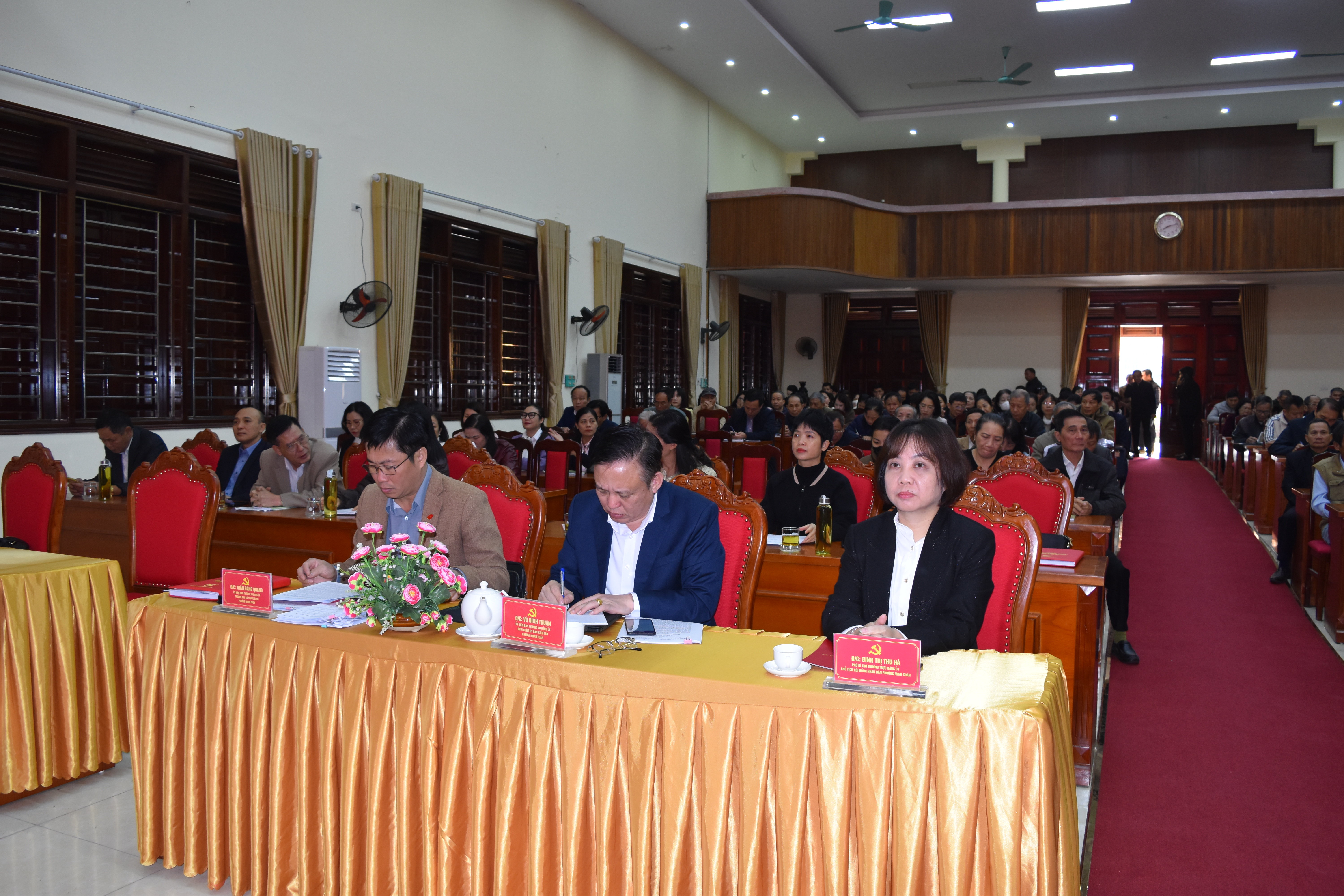 Dự hội nghị có đồng chí Đinh Thị Thu Hà, Phó Bí thư Thường trực Đảng ủy, Chủ tịch HĐND phường; các đồng chí Ủy viên Ban Thường vụ Đảng ủy, Ủy viên Ban Chấp hành Đảng bộ phường; Lãnh đạo các cơ quan chuyên trách tham mưu, giúp việc Đảng ủy; lãnh đạo Ủy ban Mặt trận Tổ quốc và các tổ chức chính trị - xã hội phường; Các đồng chí Bí thư, Phó Bí thư các chi bộ, đảng bộ trực thuộc; Các đồng chí Tổ trưởng Tổ dân phố.