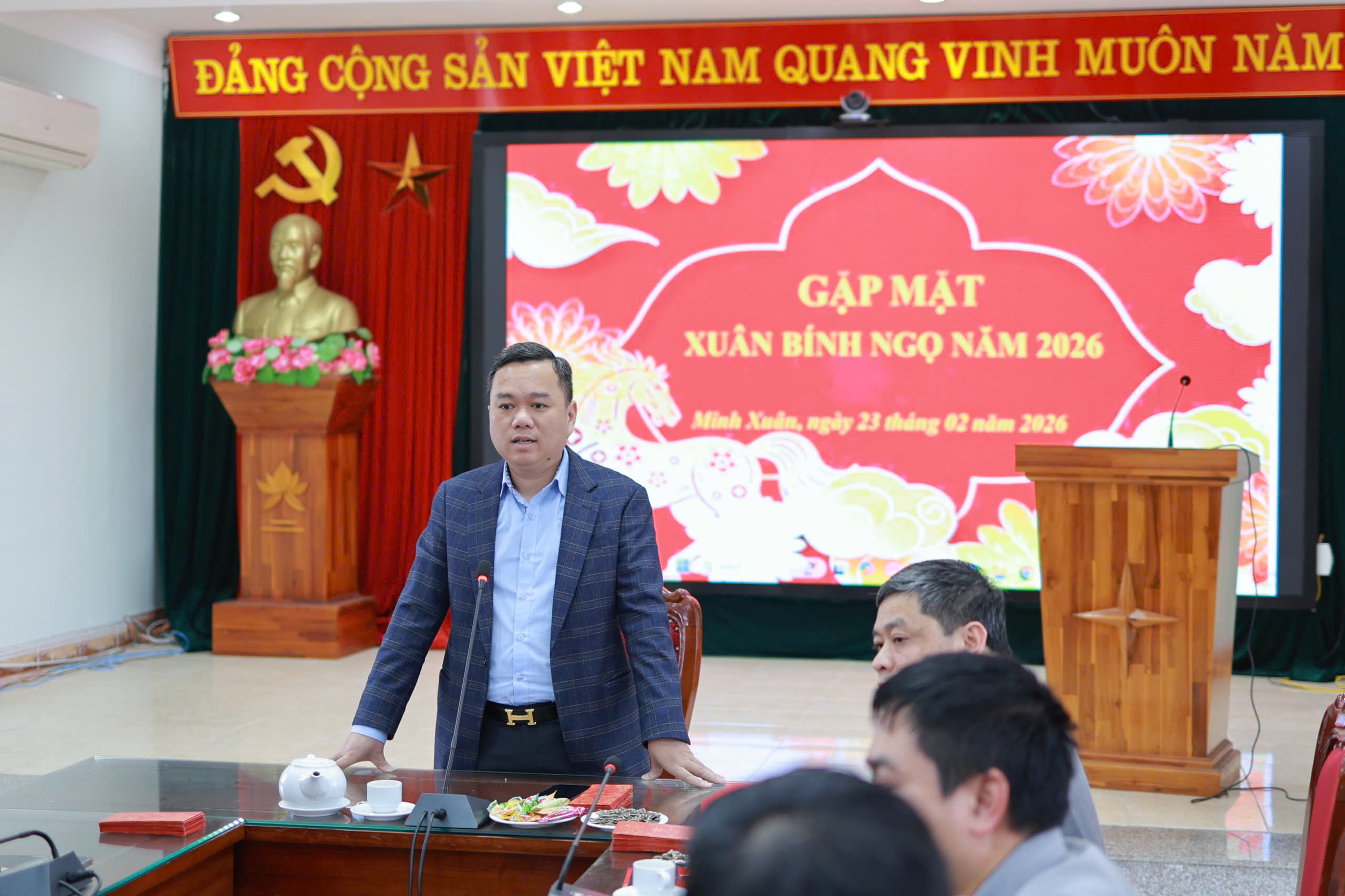 Trong không khí phấn khởi của những ngày đầu Xuân mới, đồng chí Bí thư Đảng ủy phường Minh Xuân Đỗ Hùng Đức đã gửi lời chúc mừng năm mới an khang, thịnh vượng, sức khỏe và thành công tới toàn thể cán bộ, công chức, người lao động các cơ quan, đơn vị; đồng thời thông tin khái quát tình hình trước, trong và sau Tết Nguyên đán năm 2026 trên địa bàn phường.
