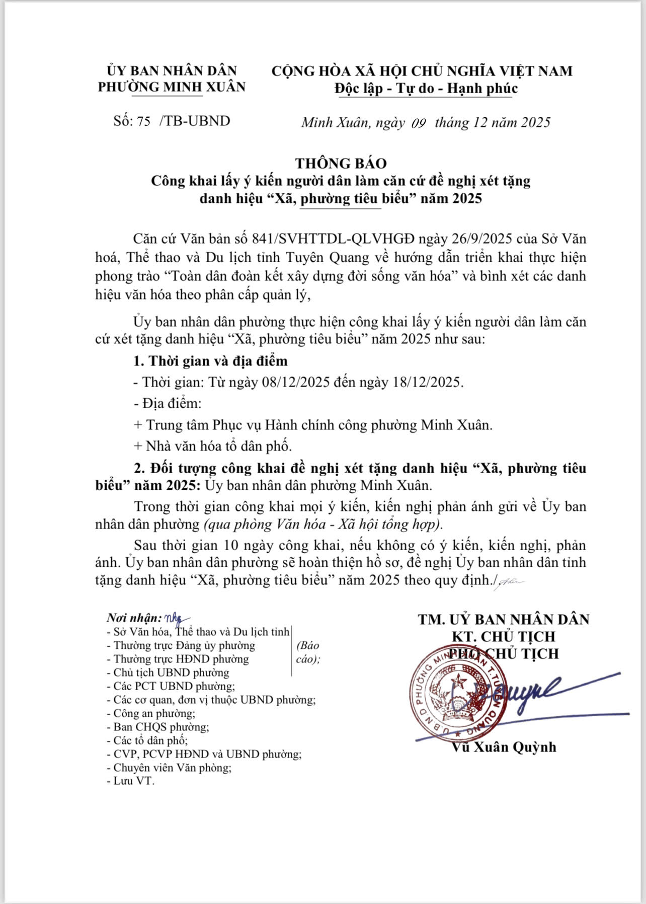 Thông báo số 75/TB- UBND ngày 09 tháng 12 năm 2025