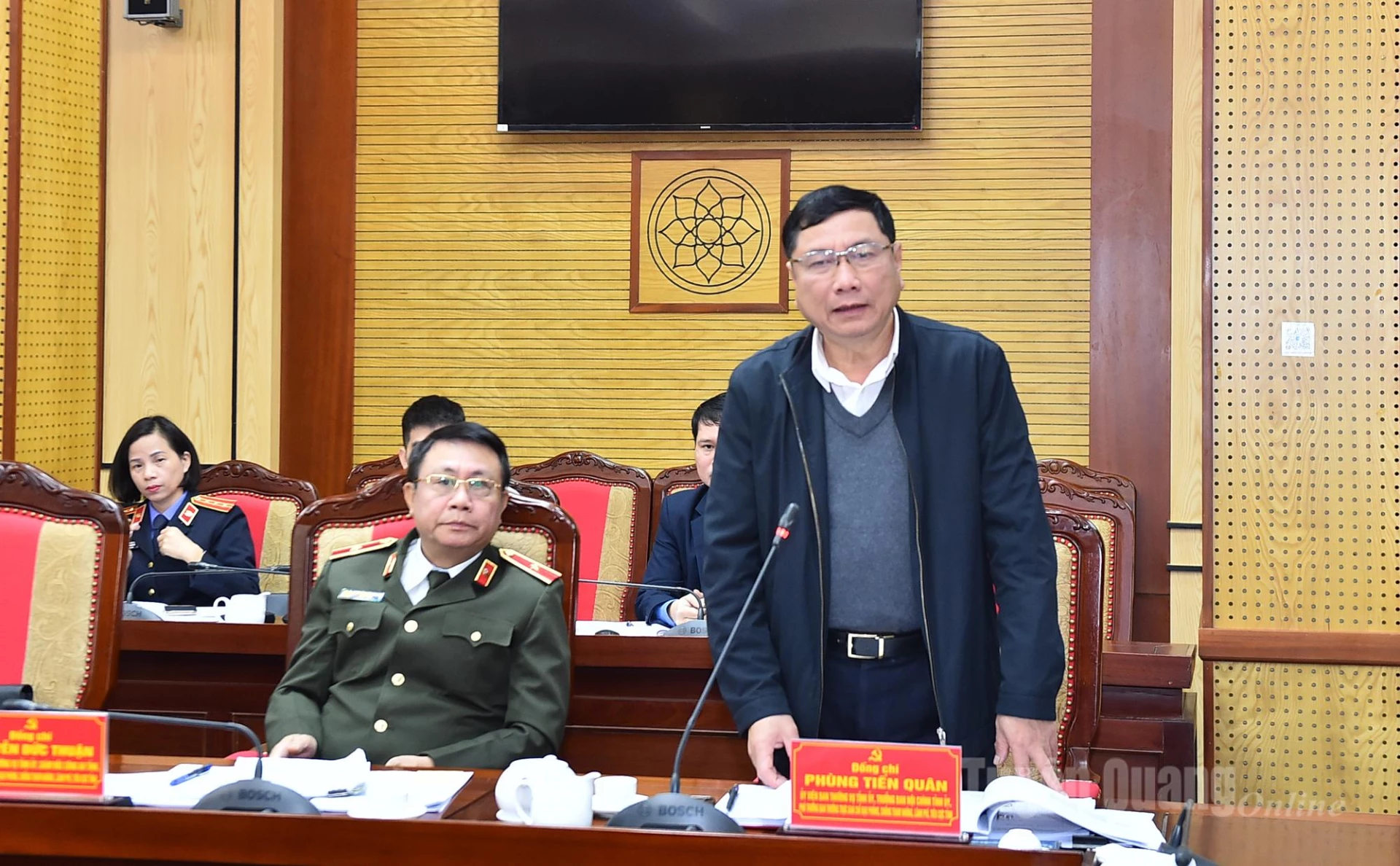 Đồng chí Nguyễn Đức Thuận, Giám đốc Công an tỉnh phát biểu tại phiên họp.