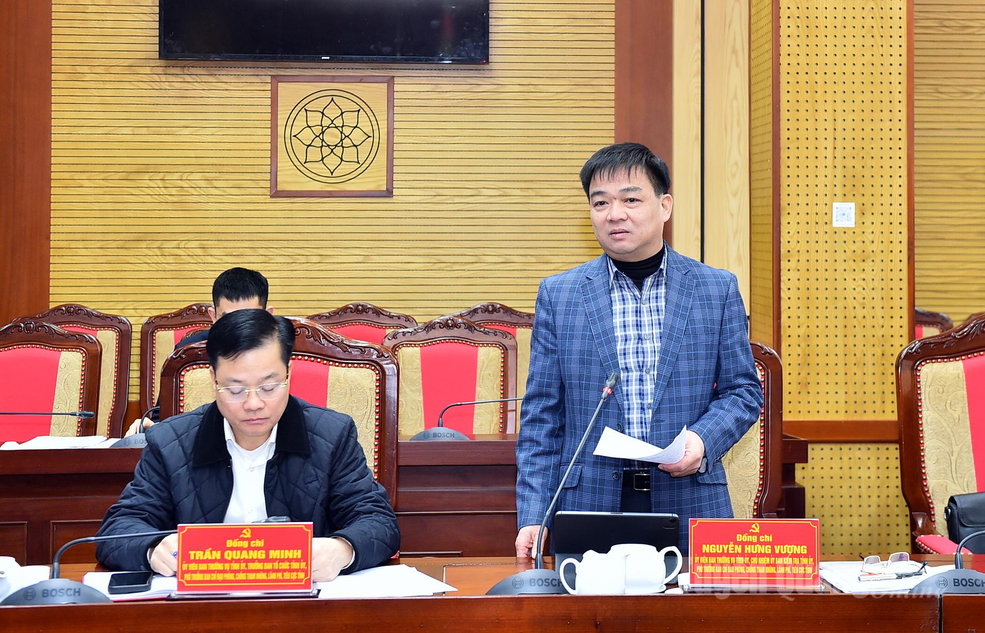 Đồng chí Chủ nhiệm Ủy ban Kiểm tra Tỉnh uỷ Nguyễn Hưng Vượng phát biểu tại phiên họp.