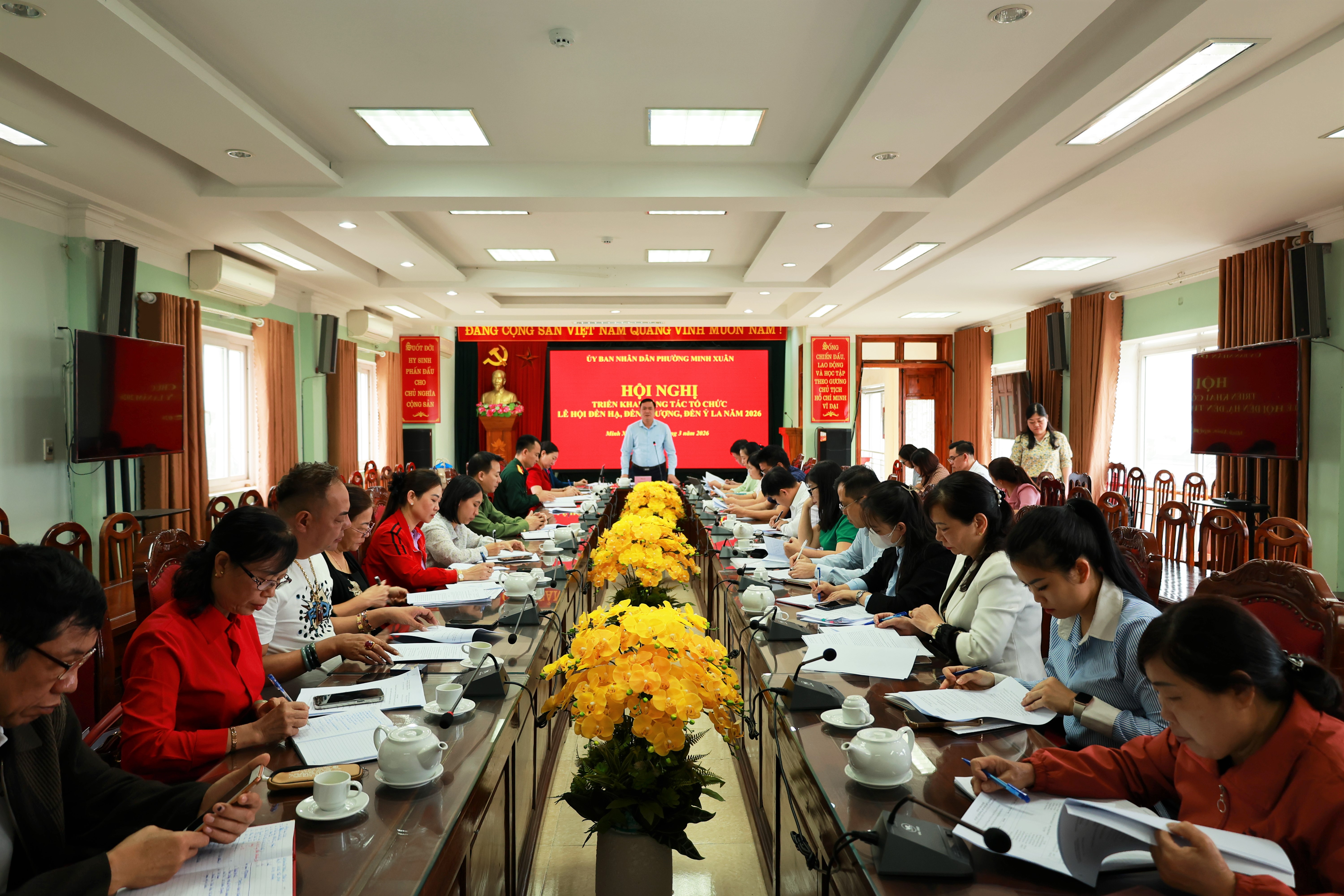 Kết luận hội nghị, đồng chí Phó Chủ tịch Ủy ban nhân dân phường Minh Xuân Vũ Xuân Quỳnh yêu cầu, các ban, ngành, đoàn thể, cơ quan, đơn vị căn cứ chức năng, nhiệm vụ được giao, chủ động xây dựng phương án và tổ chức triển khai đồng bộ, hiệu quả các nội dung theo kế hoạch. Trong đó, chú trọng bảo đảm công tác tổ chức nghi lễ trang nghiêm, chu đáo; giữ vững an ninh trật tự, an toàn giao thông; tăng cường công tác vệ sinh môi trường; đẩy mạnh tuyên truyền, cổ động trực quan. Việc tổ chức lễ hội phải bảo đảm thiết thực, tiết kiệm, an toàn, lành mạnh, phát huy giá trị văn hóa truyền thống gắn với yêu cầu phát triển bền vững.
