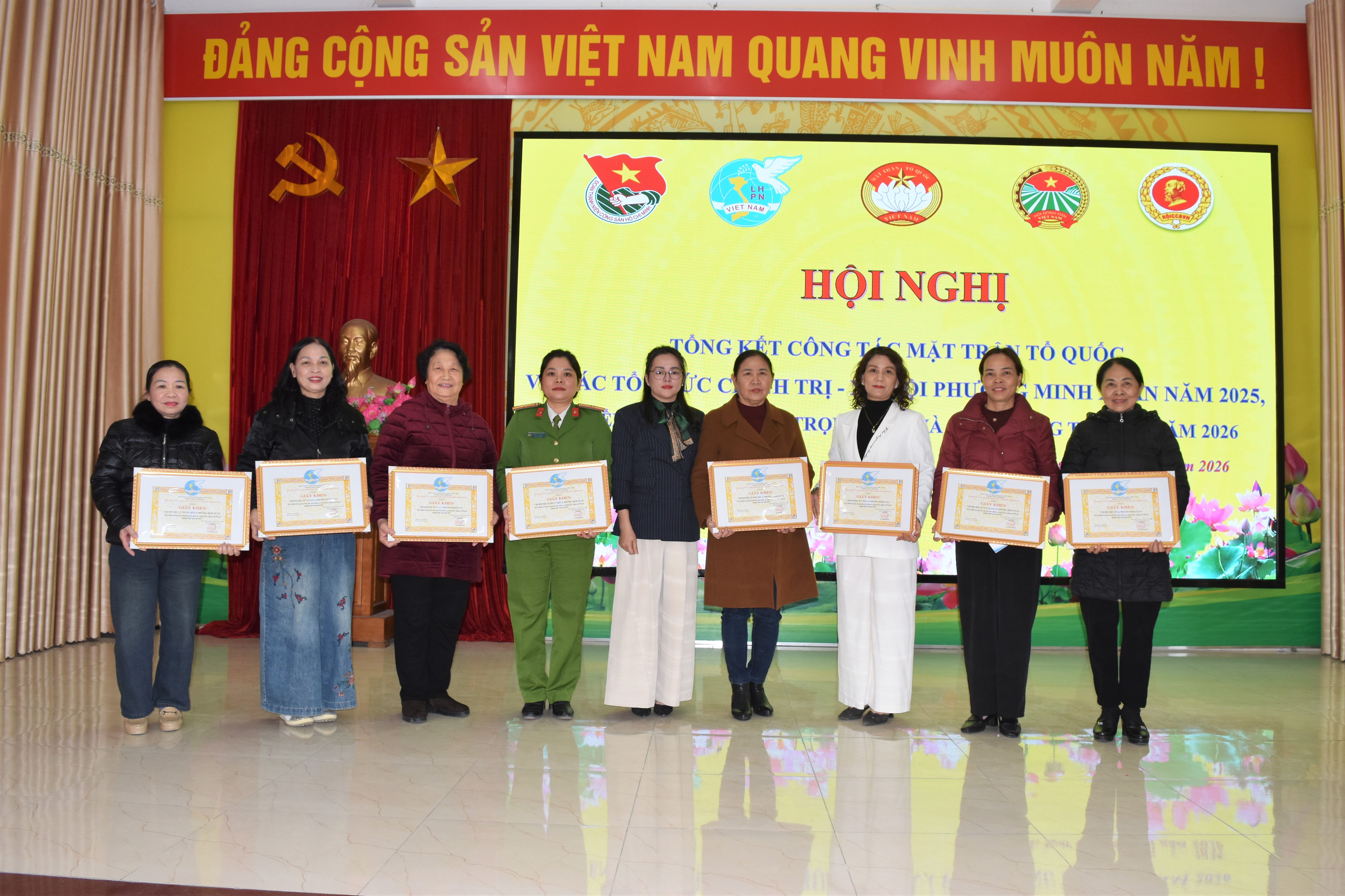 Nhân dịp này, hội nghị đã biểu dương, khen thưởng 34 tập thể, 78 cá nhân có thành tích tiêu biểu trong công tác Mặt trận và hoạt động đoàn thể năm 2025, qua đó tạo động lực thi đua hoàn thành tốt nhiệm vụ năm 2026.